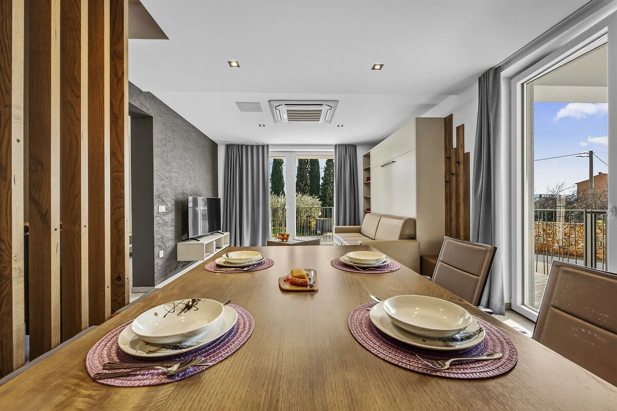 Si trova a 500 m dal supermercato "Plodine", 700 m dalla stazione degli autobus, 700 m della città, 1 km dalla spiaggia rocciosa e si trova in una zona ideale per famiglie zone.
