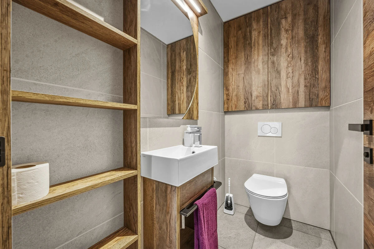 Alloggio di 74 m² arredato con gusto e nuova costruzione, con vista al giardino.