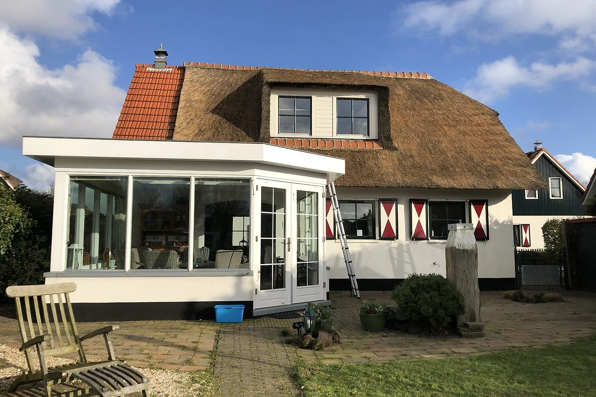 La casa, costruita nel 1998, si trova nel tranquillo e curato parco vacanze Buitenplaats, con un aspetto uniforme dato dalle 150 case vacanza con tetto in paglia, a 1 km in linea d’aria dalla lunga spiaggia di Callantsoog. Sentiero a piedi attraverso un bosco sul retro del parco oppure 5 minuti in auto fino al tranquillo villaggio con chiesa, piccoli negozi, caffè, ristoranti e gelateria campione del mondo e Albert Heijn aperto 365 giorni all’anno. Sulla spiaggia, moderni caffè come Woest e "vecchie capanne" come De Toko e De Tent con grandi terrazze invitano a sedersi comodamente e a godersi il tramonto - fantastici tramonti inclusi. I tour in bicicletta verso sud attraverso le dune da Schorl a Bergen sono altrettanto affascinanti quanto quelli verso nord a Julianadorp e Den Helder. Ogni stagione qui ha il suo fascino, siano essi i colorati campi di tulipani in fiore in primavera, le calde e piene giornate estive sulla spiaggia o le fresche e più solitarie ore al mare in novembre.