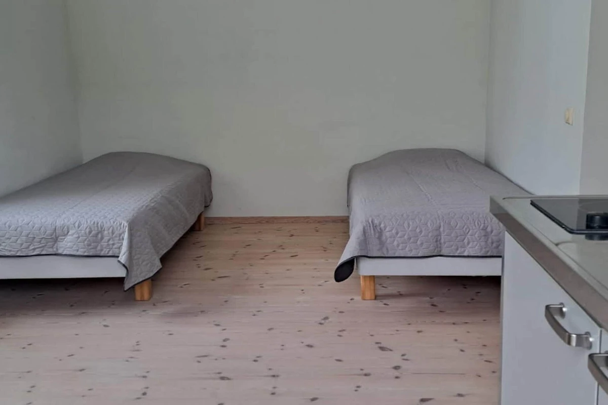 , Cucina separata(mobile cucina(elettrico), caffettiera, forno, forno a microonde, lavastoviglie, frigo con congelatore, acqua dal pozzo), Soggiorno/camera da letto, Camera da letto(letto matrimoniale), Camera da letto(2x letto singolo), Camera da letto(2x letto singolo), Bagno(lavabo, doccia, WC), Bagno(lavabo, WC), riscaldamento(elettrico), mobili da giardino, parcheggio