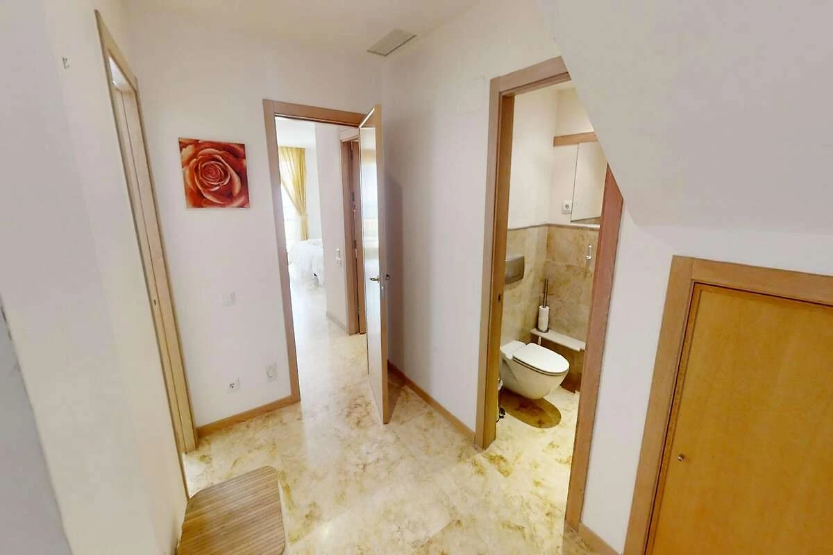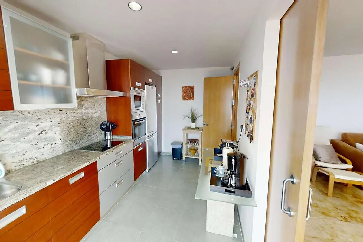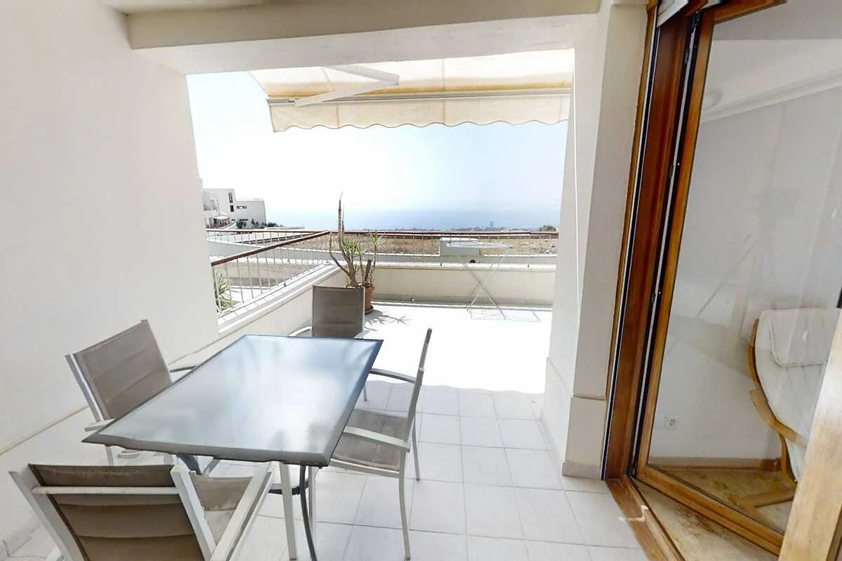 All'interno, l'appartamento dispone di due comode camere da letto, due bagni moderni completamente attrezzati e un WC separato, garantendo privacy e comodità a tutti gli ospiti. La zona giorno si apre su un accogliente spazio comune con comodi posti a sedere e accesso diretto alla terrazza, mentre la cucina ben attrezzata è dotata di tutti gli elettrodomestici essenziali, consentendovi di preparare i pasti senza sforzo durante il vostro soggiorno. L'aria condizionata in tutto l'appartamento mantiene gli interni piacevolmente freschi anche durante i mesi estivi più caldi.