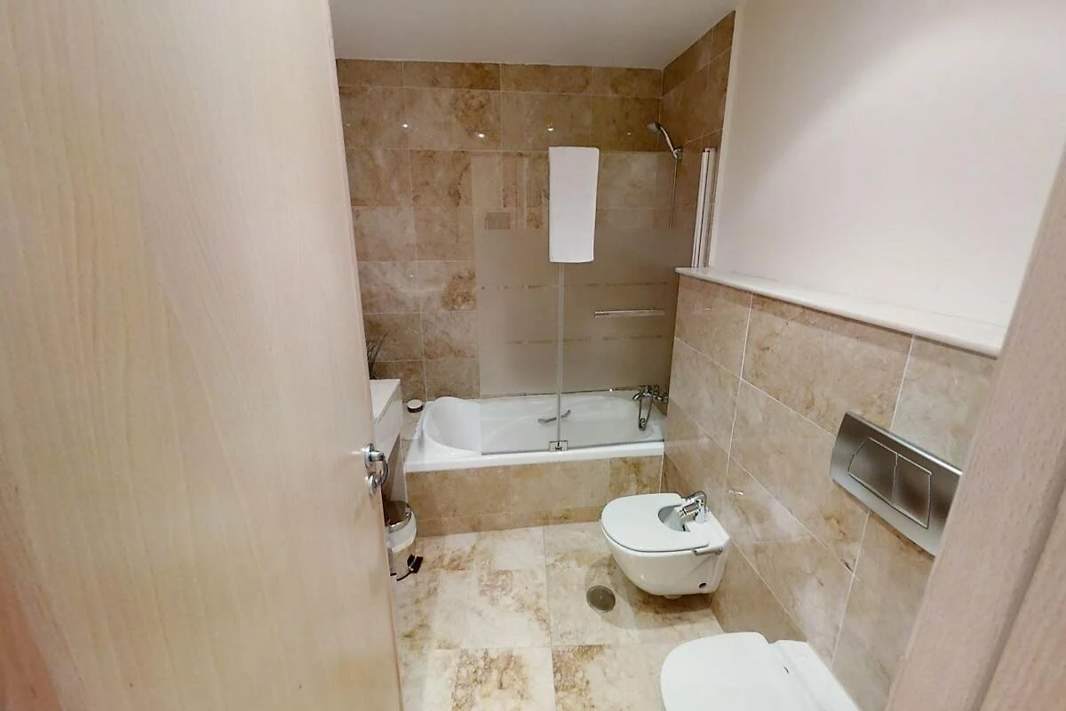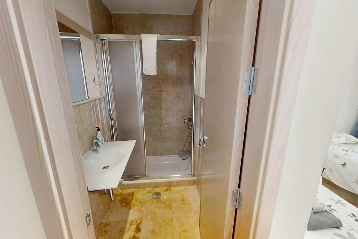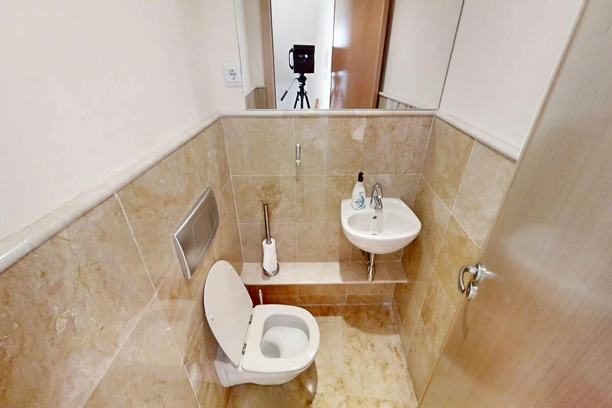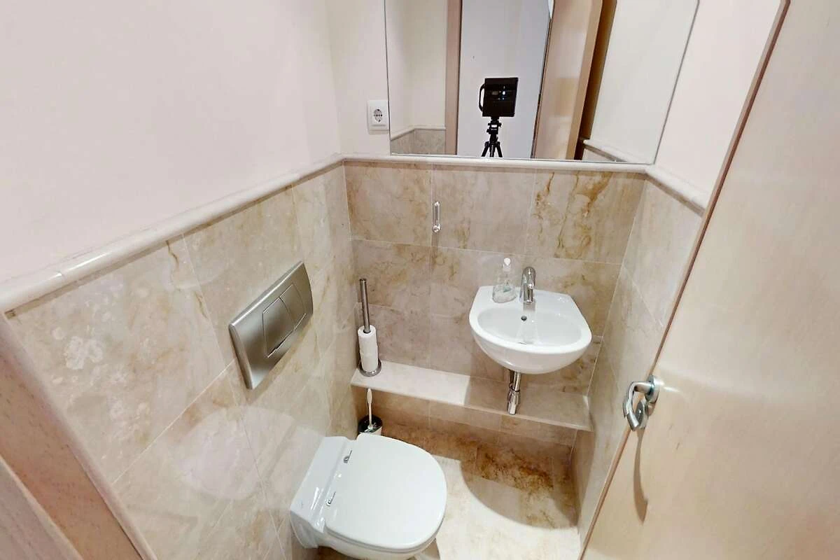 All'interno, l'appartamento dispone di due comode camere da letto, due bagni moderni completamente attrezzati e un WC separato, garantendo privacy e comodità a tutti gli ospiti. La zona giorno si apre su un accogliente spazio comune con comodi posti a sedere e accesso diretto alla terrazza, mentre la cucina ben attrezzata è dotata di tutti gli elettrodomestici essenziali, consentendovi di preparare i pasti senza sforzo durante il vostro soggiorno. L'aria condizionata in tutto l'appartamento mantiene gli interni piacevolmente freschi anche durante i mesi estivi più caldi.