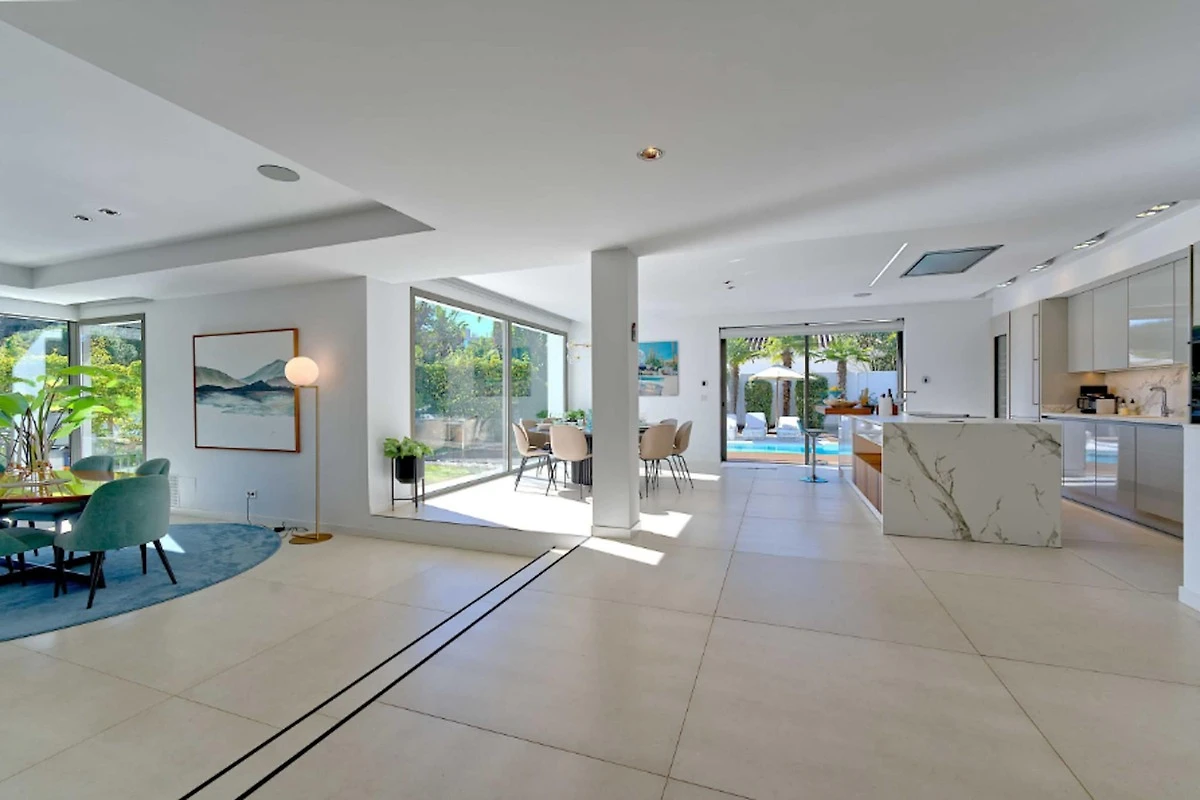 Situata in uno dei quartieri più ambiti di Marbella, a pochi passi dal vivace porto turistico e dalla spiaggia di Puerto Banús, questa elegante villa con 5 camere da letto promette un soggiorno indimenticabile sulla Costa del Sol per famiglie, gruppi o amici. Coniugando un design contemporaneo con ampi spazi abitativi, offre comfort, privacy ed eccezionali aree ricreative all’aperto, perfette per una vacanza in Andalusia all’insegna del sole.