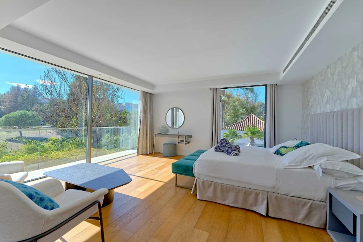 All'esterno, lo stile di vita mediterraneo risplende: una piscina privata circondata da lettini invita a tuffi rinfrescanti, mentre una sauna e una vasca idromassaggio offrono un relax indulgente dopo una giornata trascorsa in spiaggia o a giocare a golf. Terrazze paesaggistiche e aree giardino creano angoli suggestivi per cene all'aperto e drink serali mentre soffia la calda brezza costiera.