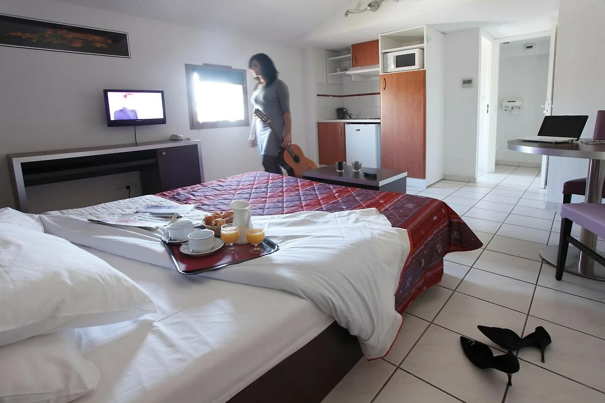 La proprietà offre anche piacevoli spazi esterni con posti a sedere che consentono di trascorrere momenti di tranquillità all'aria aperta, sia che si tratti di gustare un caffè mattutino prima di esplorare la città, di pranzare all'aperto o di rilassarsi la sera dopo una giornata trascorsa a passeggiare per le vie storiche di Carcassonne. Il parcheggio è un ulteriore vantaggio per gli ospiti che arrivano in auto.
