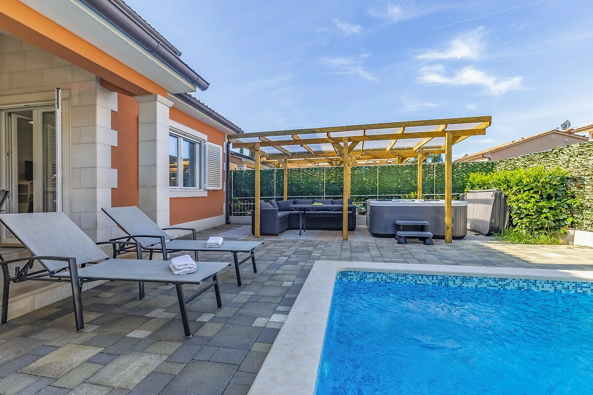 La villa a Pula ha 3 camera(e) da letto e capacità per 8 persone (mass. 6 adulti).