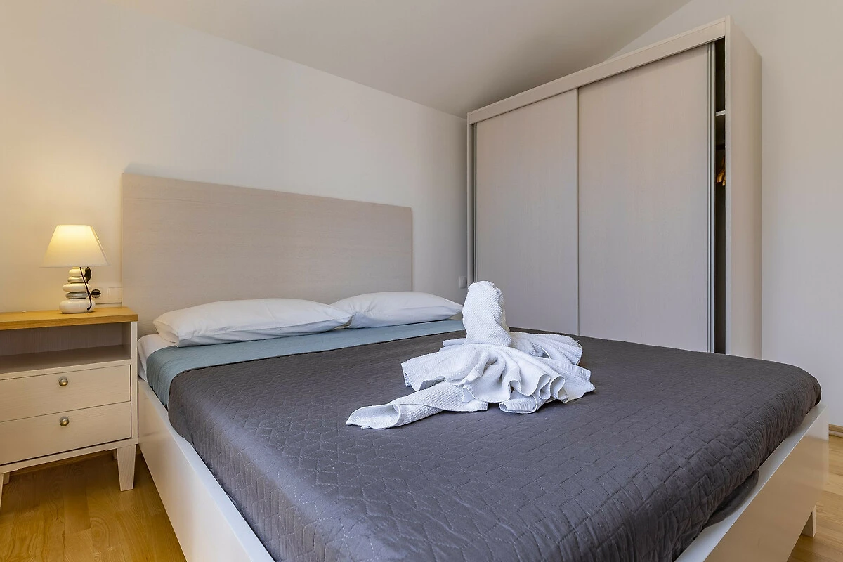 Si trova a 20 m dal ristorante , 300 m dalla stazione degli autobus, 300 m dal supermercato "Lidl", 2 km dalla spiaggia rocciosa, 2 km della città, 2 km from hospital, 9 km dall'aeroporto, 10 km dalla spiaggia di sabbia "Bijeca" e si trova in una zona ideale per famiglie zone e nel complesso residenziale.