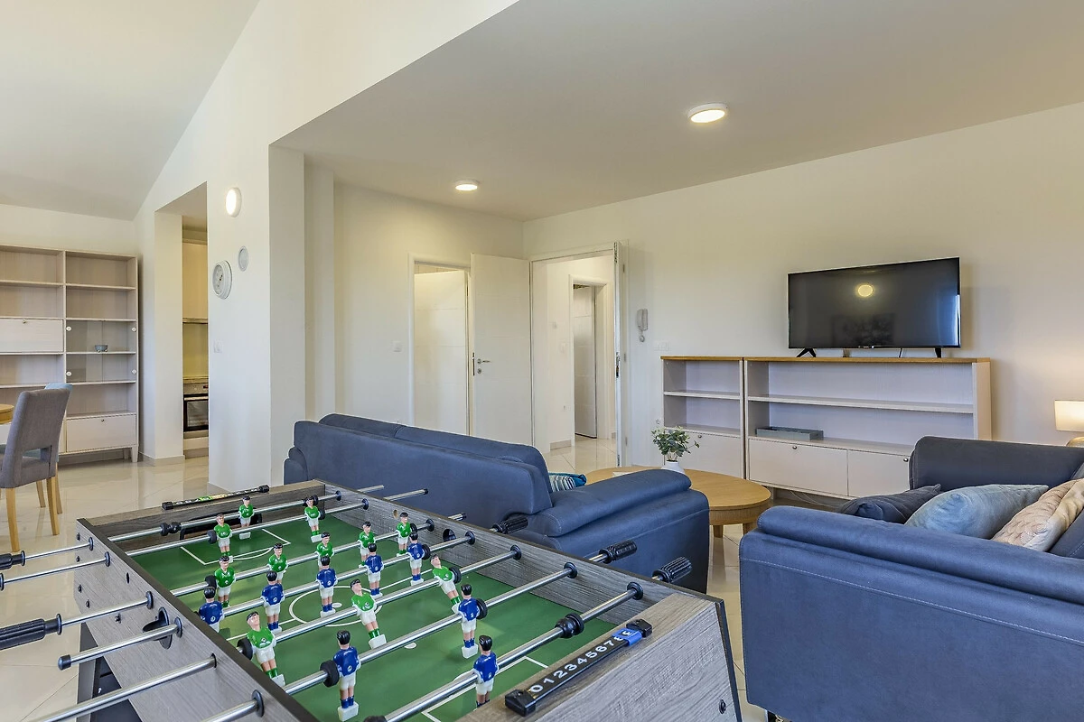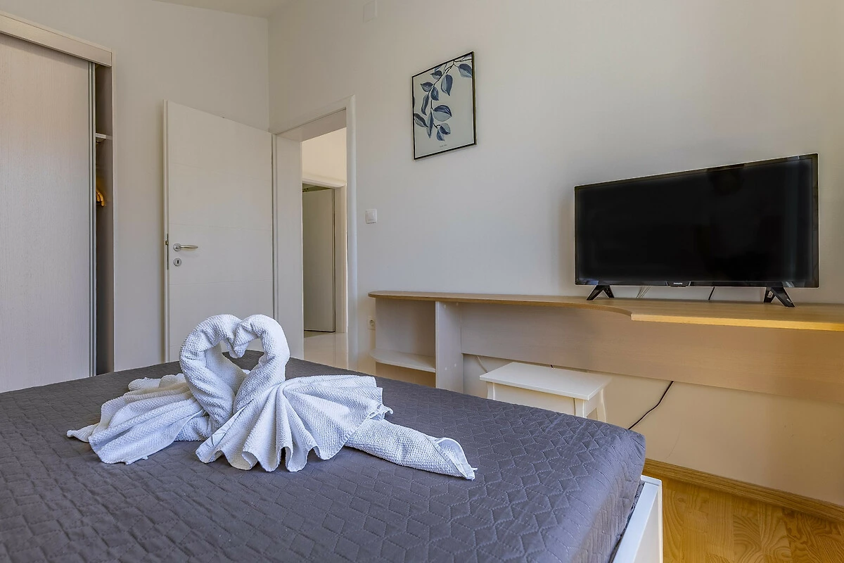 Si trova a 20 m dal ristorante , 300 m dalla stazione degli autobus, 300 m dal supermercato "Lidl", 2 km dalla spiaggia rocciosa, 2 km della città, 2 km from hospital, 9 km dall'aeroporto, 10 km dalla spiaggia di sabbia "Bijeca" e si trova in una zona ideale per famiglie zone e nel complesso residenziale.