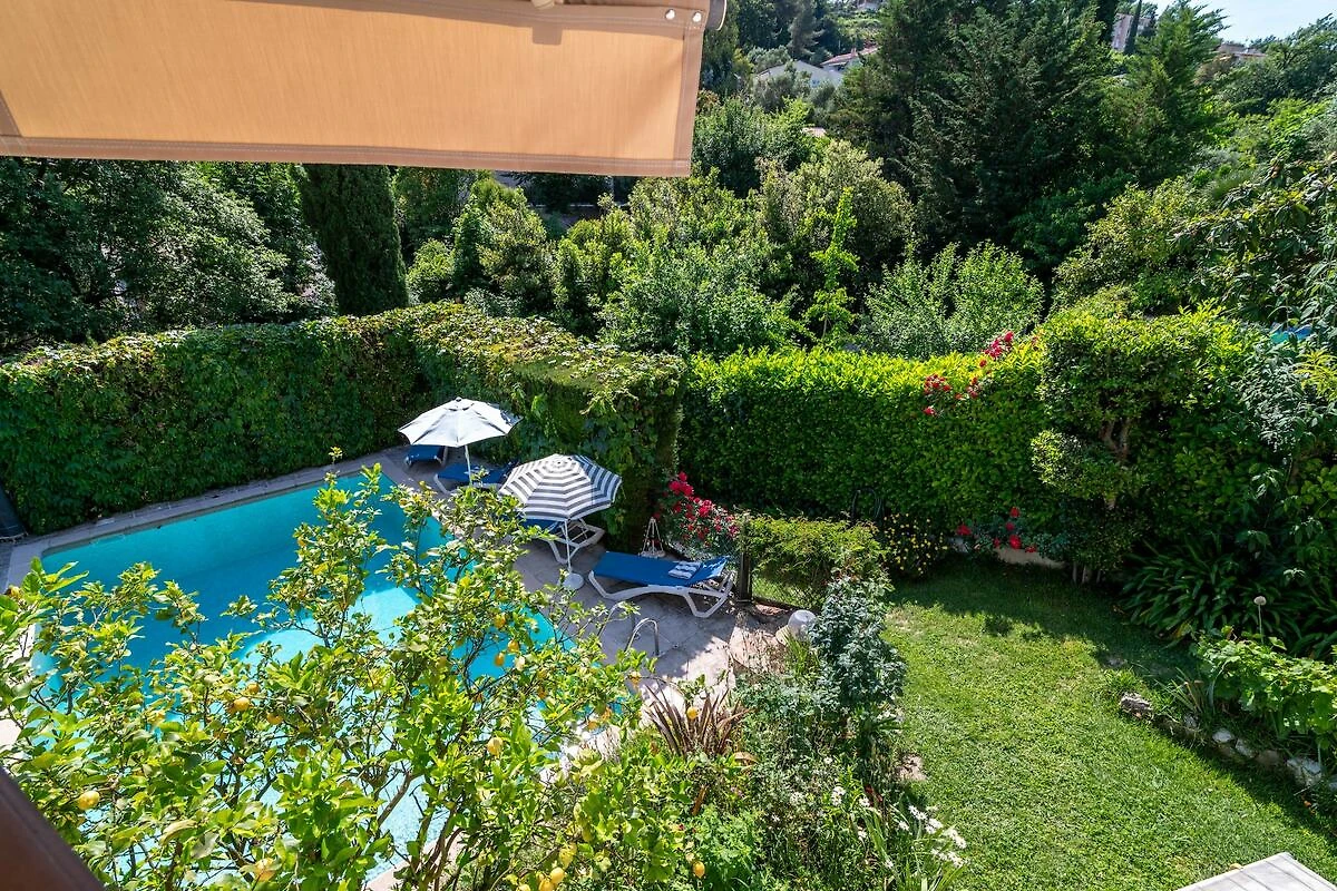 Il giardino è dotato di una splendida piscina privata con annessa terrazza con lettini e ombrellone. Le palme e la vista in lontananza sul Mar Mediterraneo creano un'atmosfera vacanziera meravigliosa. La terrazza coperta con mobili da giardino e barbecue vi permetterà di cenare all'aperto la sera.