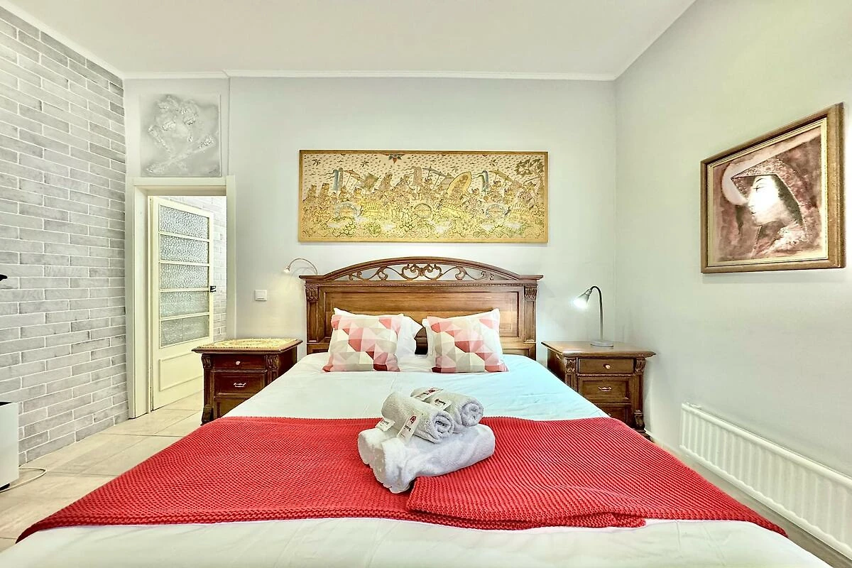 All'interno, l'appartamento può ospitare fino a quattro persone. La zona notte comprende un letto king-size nella camera da letto e un divano letto matrimoniale nella zona giorno, creando un layout chiaro e funzionale. La zona giorno è luminosa e moderna, con comodi divani e una TV che offrono un luogo dove rilassarsi. La cucina completamente attrezzata include elettrodomestici come forno, microonde, frigorifero, macchina del caffè e piano cottura, rendendo la preparazione dei pasti semplice. L'appartamento dispone anche di un bagno con doccia, oltre a comfort come Wi-Fi, aria condizionata e lavatrice con asciugatrice per la massima comodità quotidiana.