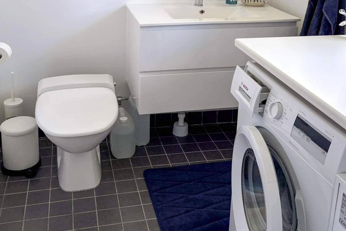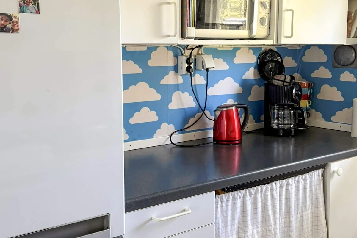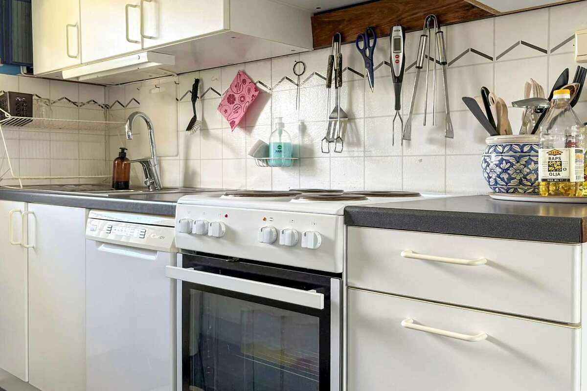 , Cucina separata(mobile cucina(elettrico), caffettiera, forno a microonde, lavastoviglie, frigo con congelatore), Soggiorno/camera da letto, Camera da letto(letto singolo), Camera da letto(letto singolo), Camera da letto(letto singolo), Bagno(lavabo, doccia, WC, lavatrice), riscaldamento(elettrico)