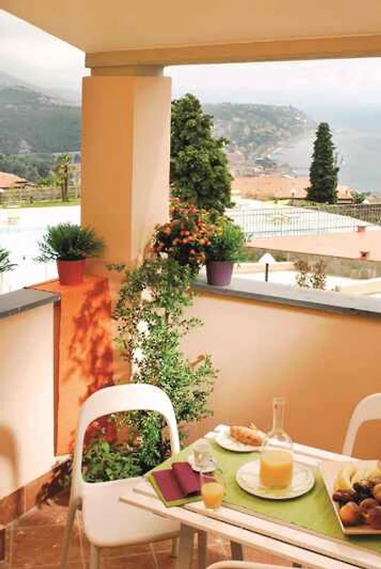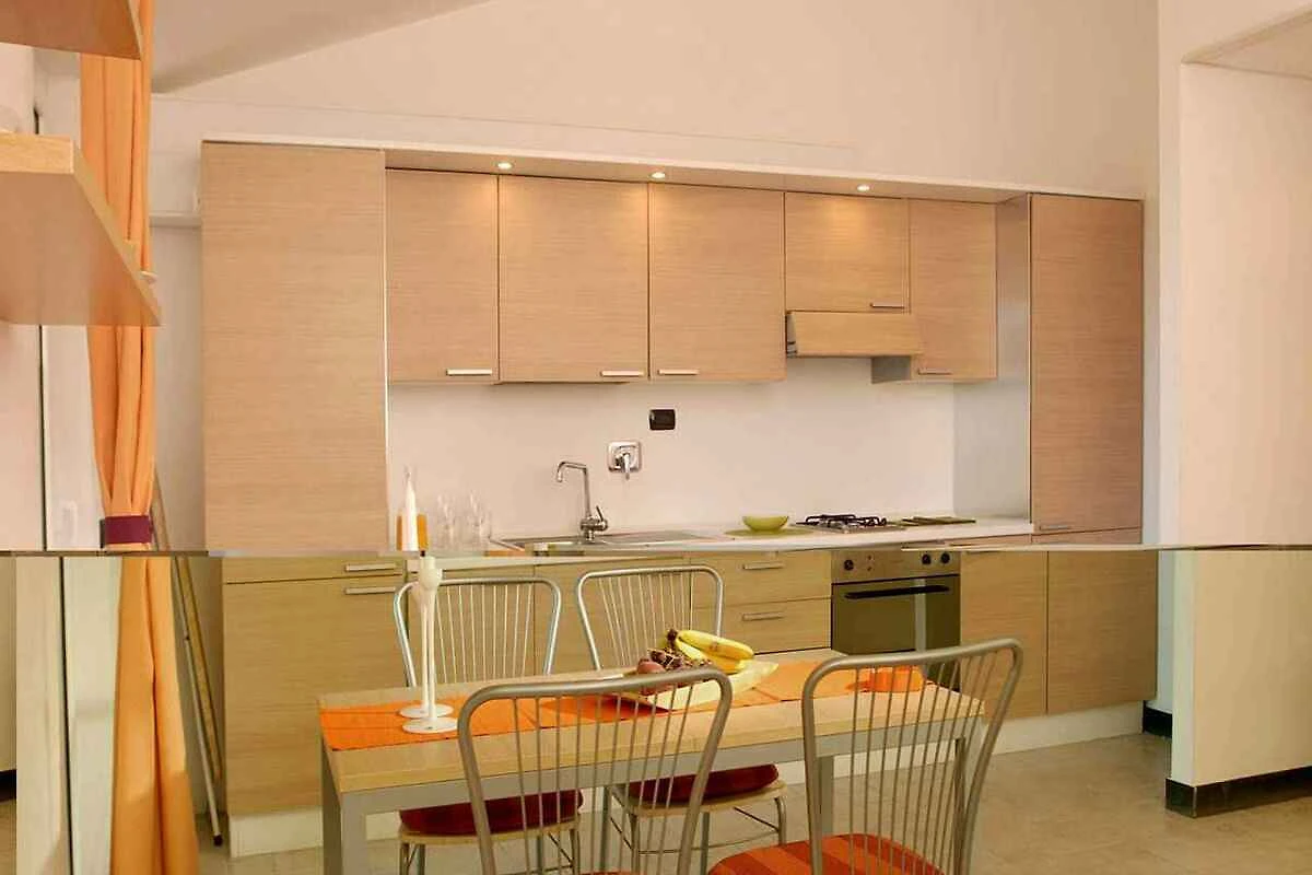 L'alloggio può trovarsi su diversi piani. Soggiorno con area salotto, TV, aria condizionata, zona pranzo e, a seconda del piano, il soggiorno ha accesso al balcone, terrazza o giardino, ciascuno con vista mare. Camera da letto con 1 letto matrimoniale. Angolo cottura nel soggiorno con fornello a gas, forno e frigorifero. Bagno con doccia, 1 lavabo, WC, bidet e asciugacapelli.