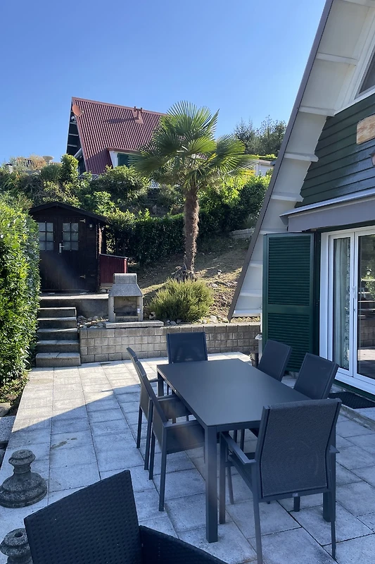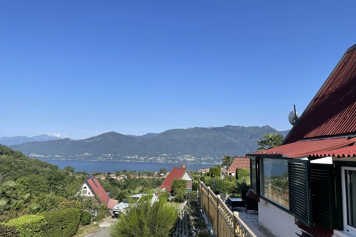 Sulla **terrazza arredata sul davanti** potete godere della vista sul Lago Maggiore.