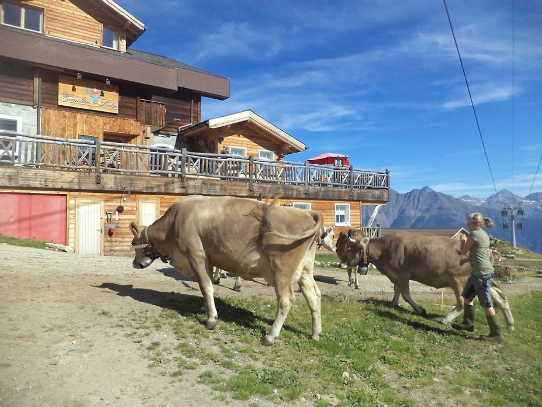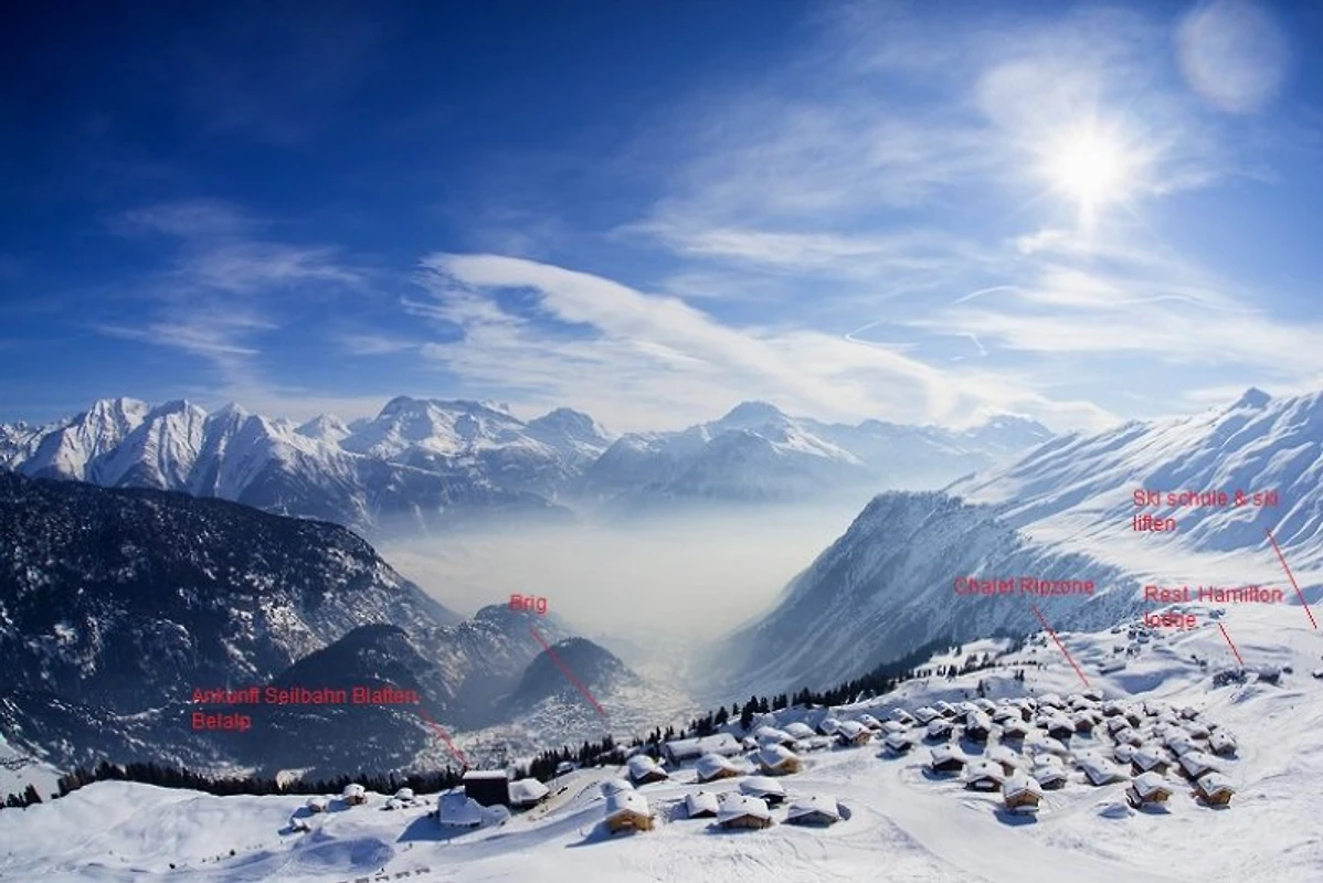 Belalp è una zona priva di auto e facilmente raggiungibile con la funivia. Questo è uno dei motivi che rendono il luogo così speciale. Se volete, potete rimanere in montagna per tutta la vacanza: c'è l'imbarazzo della scelta per quanto riguarda l'intrattenimento sportivo e culinario. Un piccolo ma grazioso negozio Vis-a-Vis offre pane appena sfornato al mattino. A 400 m di distanza si trovano quattro ottimi ristoranti: l'Hamilton Lodge & Spa (terrazza panoramica, ottimo menu), il Ristorante Aletschhorn (cucina regionale), il Ristorante Bergstation (cucina vallesana) e la Pizzeria Skilift. Il nostro chalet si trova a circa 300 m a ovest della stazione a monte della funivia