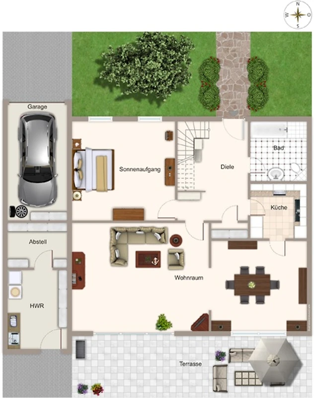 La proprietà di circa 600 m² è completamente recintata e comprende un garage e fino a 2 posti auto!