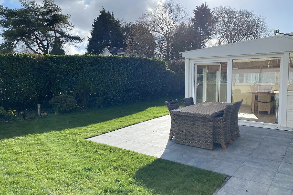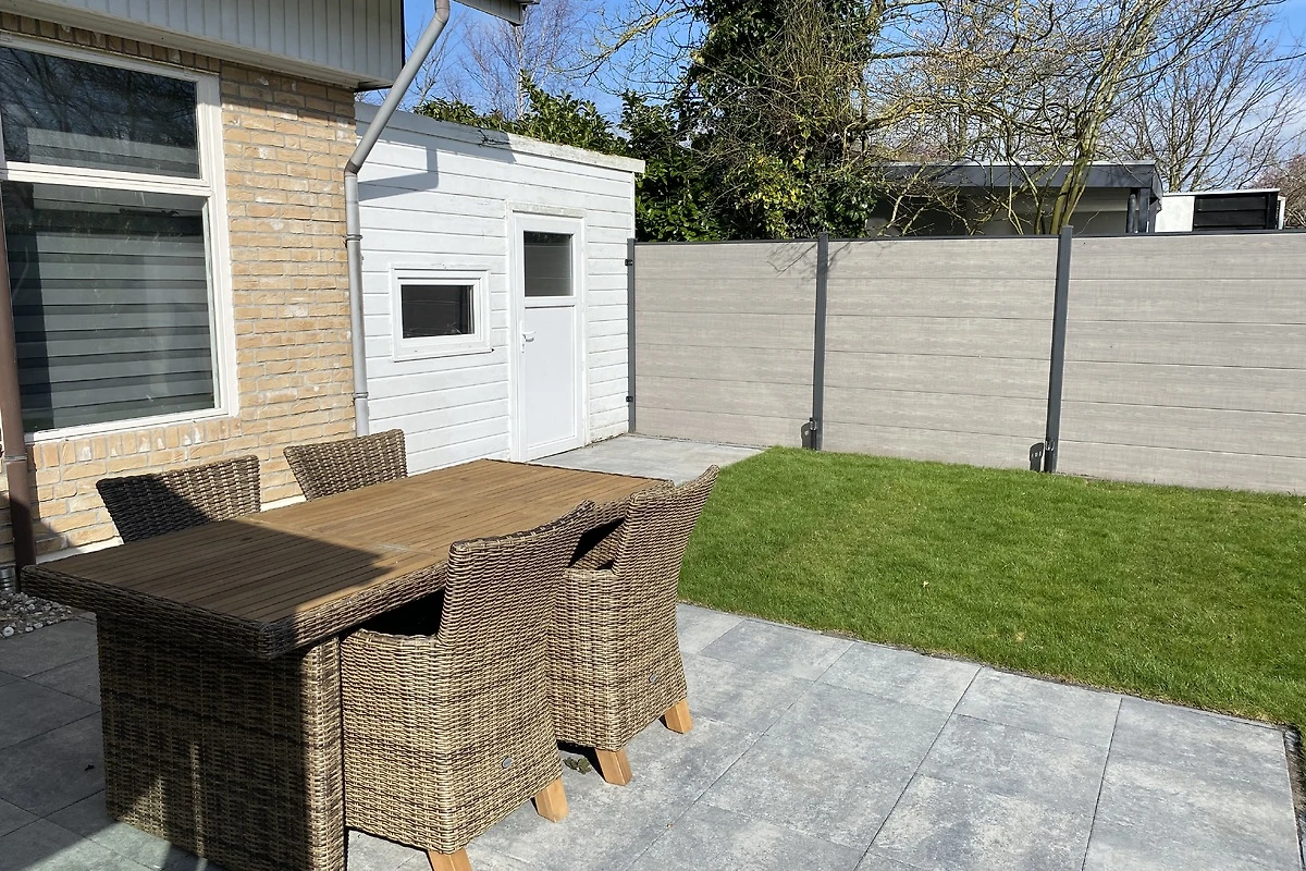 Bella casa per vacanze indipendente, circa 95 mq di superficie abitabile, con grande giardino d'inverno di circa 18 mq. Un terreno d'angolo di 360 m² (sud/ovest) offre spazio sufficiente e un'atmosfera privata. Un posto auto coperto a lato della casa, sufficiente per 2 auto.