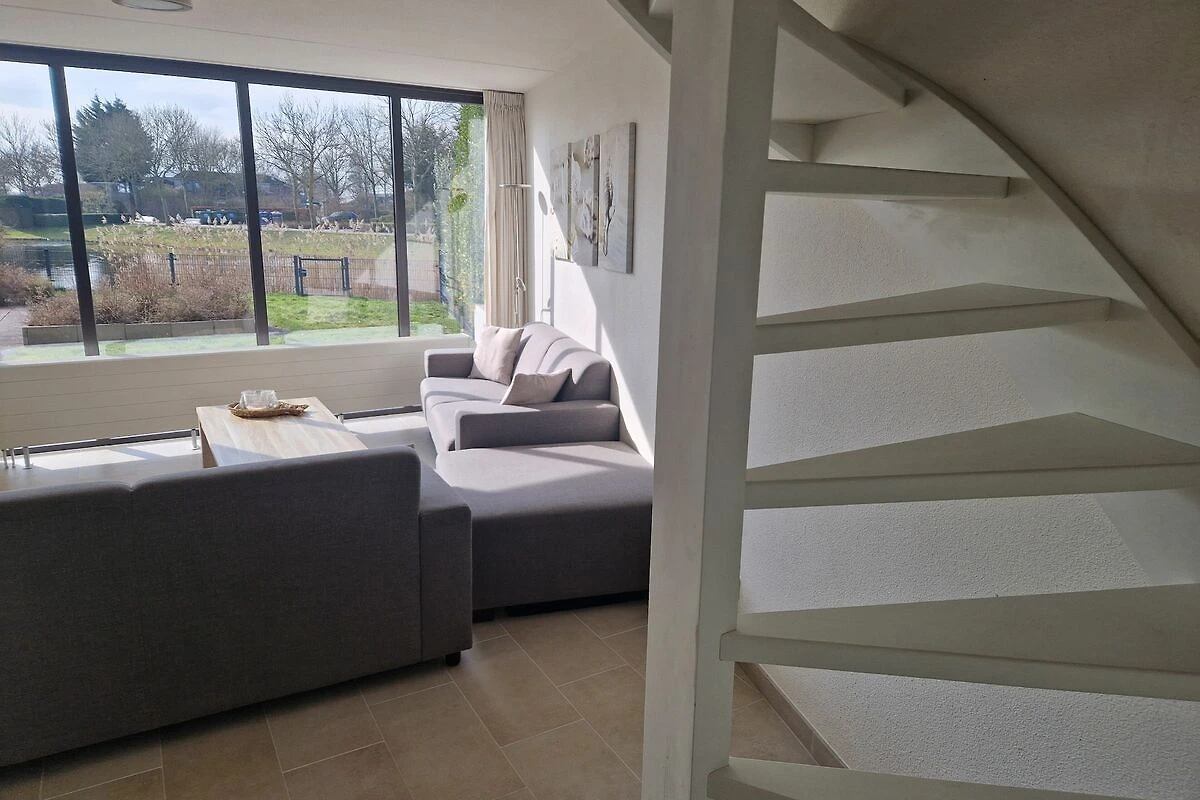 Casa privata (90m²) in stile Townhouse con un proprio giardino e una splendida vista sul grande stagno adiacente. La casa è distribuita su due piani. Al piano terra si trova un bagno con WC e doccia, una cucina con zona pranzo e un ampio soggiorno adiacente. Dal soggiorno si accede direttamente alla terrazza e al giardino. Al piano superiore ci sono 3 camere da letto con posti letto per 5 persone. Van 2 x 2 persoons slaapkamers heeft directe toegang tot het balkon en hebben ook airco! . Ook een berging met wasmachine, droger en diepvries tevens ook voor het opslaan van fietsen. Direct voor het huis is er een parkeerplaats voor de auto. Het huis beschikt over een internetverbinding en een smart tv.