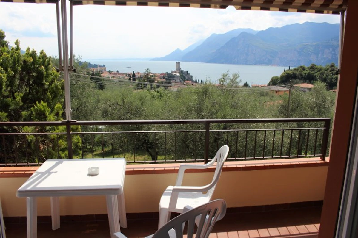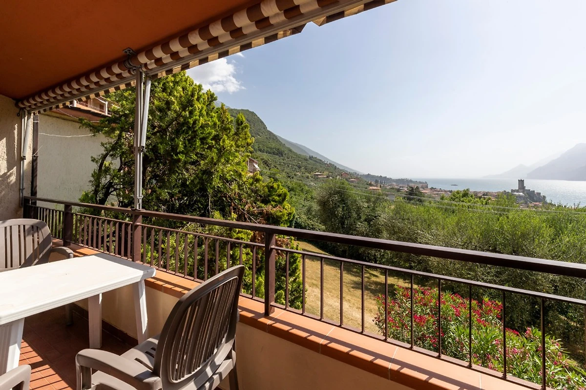 L'appartamento è situato all'interno del Residence Kormorano un grande complesso di cinquanta appartamenti nella città di Malcesine sulla costa orientale del Lago di Garda.