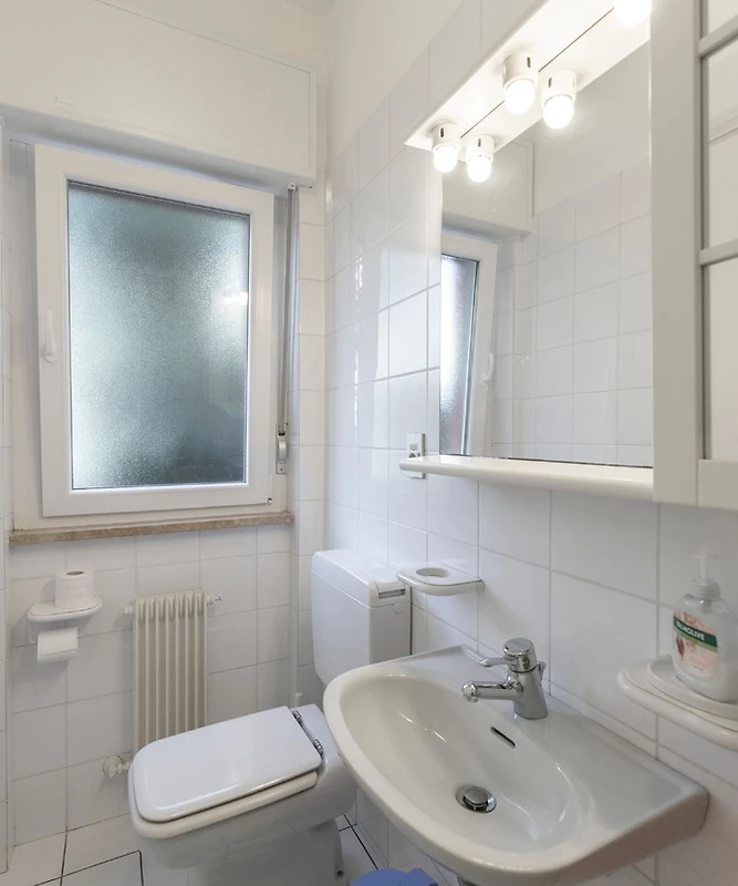 L'appartamento è su due piani; al primo cucina, soggiorno e un bagno. Al secondo ci sono due camere doppie, una camera singola e un bagno. Ogni piano ha un balcone.