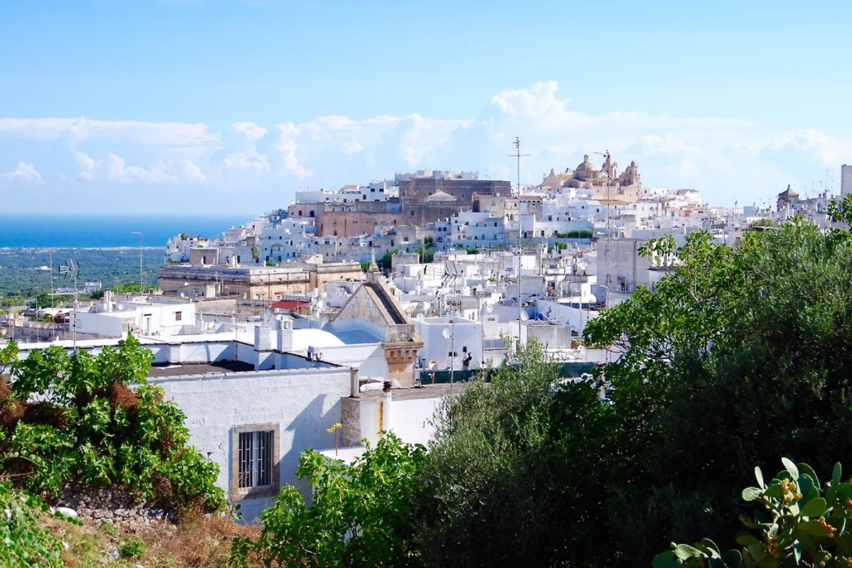 Ostuni, in particolare il centro storico con le sue strade tortuose - vale sia durante il giorno, quando la luce del sole splende sulla e la sera quando è illuminato -; Grottaglie, la città della ceramica; Martina Franca; Monopoli con il suo incantevole porto; Castel del Monte, Trani e Giovinazzo vicino a Bari; Bari allo shopping (!); il nahegelegne e le sue innumerevoli Trulli caratterizzati Valle d'Itria (la Valle d'Itria) con la località Locorotondo (noto anche per il suo vino) e Alberobello; nel sud della Puglia l'affascinante città barocca di Lecce (la "Firenze del Sud") e l'intero Salento.