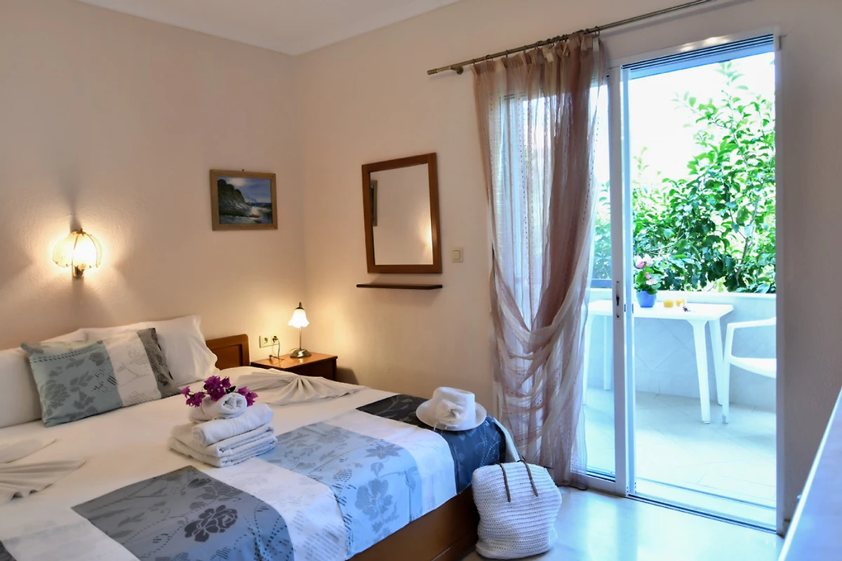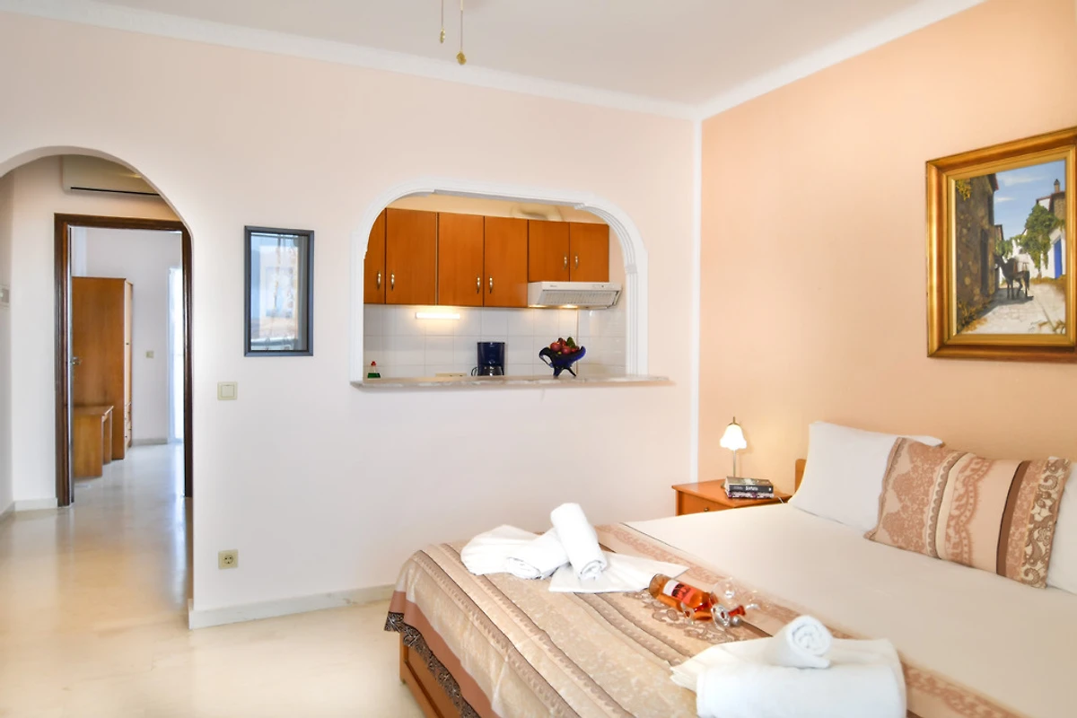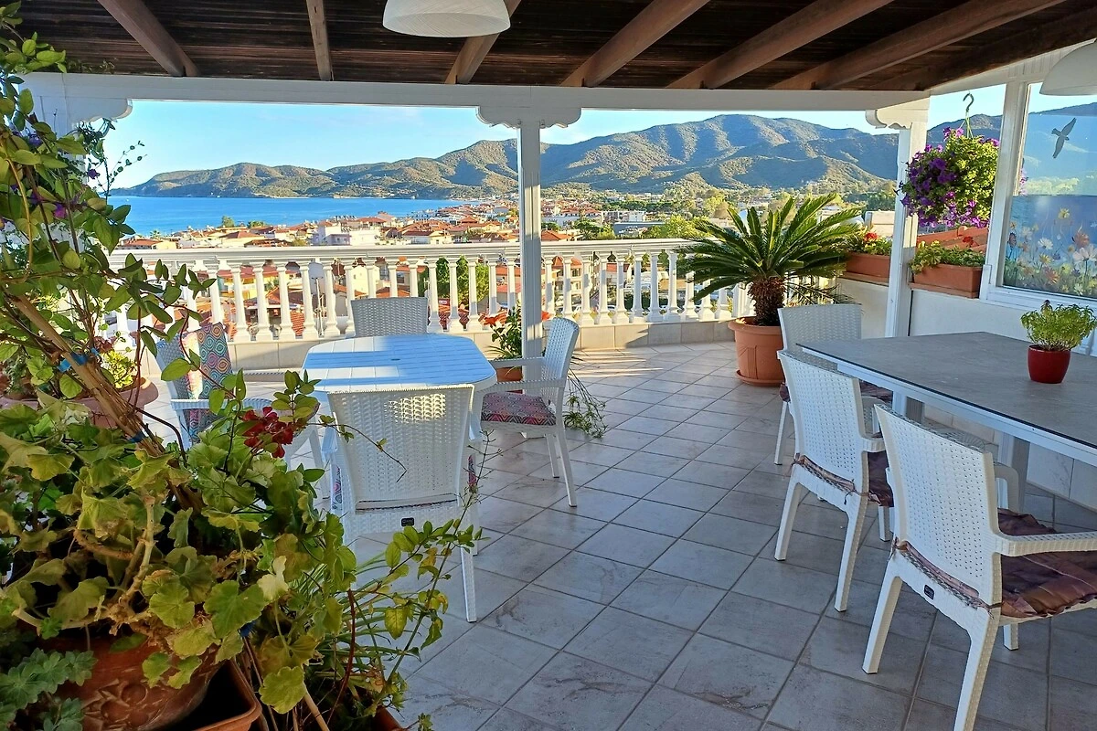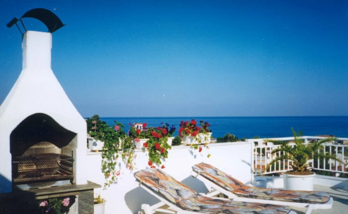 Appartamenti e monolocali per vacanze con vista libera sul mare, sulle montagne e sul villaggio.