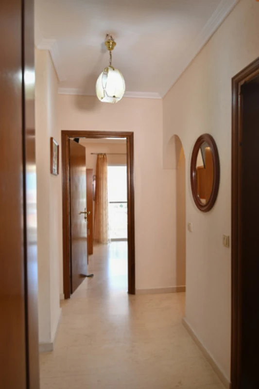 Appartamento con 2 camere da letto separate e 2 balconi per 4-5 persone, doccia / WC, cucina separata con piastre elettriche, frigorifero, macchina da caffè e stoviglie.