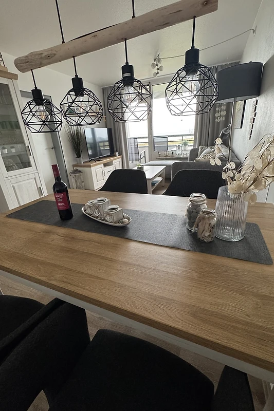Angolo cottura con elettrodomestici da incasso, piano cottura in vetroceramica, forno con calore superiore e inferiore e a convezione, lavastoviglie, frigorifero con scomparto freezer, macchina da caffè "Senseo Switch", bollitore. Naturalmente troverete anche stoviglie in abbondanza e tutti gli utensili da cucina.