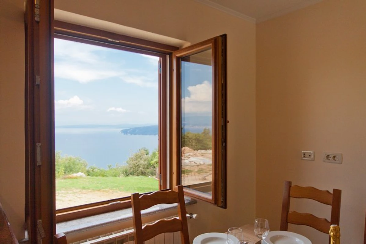 La casa è stata costruita nel 1906. e rinnovata il 2014. La casa ha 2 piani, che sono collegati esternamente. Al piano terra ci sono 2 camere da letto e 1 bagno. Al primo piano c'è una cucina con la sala da pranzo, soggiorno, bagno, wc e una camera da letto. Davanti alla casa una grande terrazza è coperto con viti. Dietro la casa è una splendida vista su tutto il golfo di Kvarner e sulle isole e la città di Fiume. Per i più piccoli c'è uno scivolo e un'altalena.
