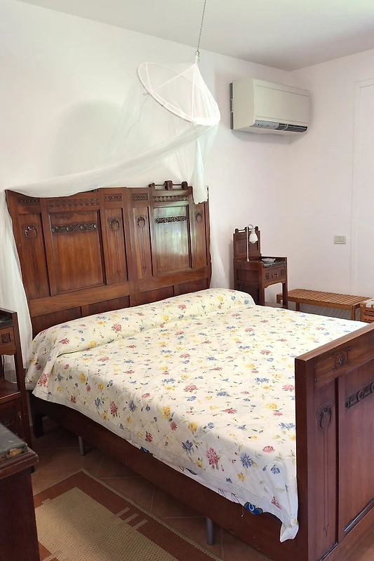 47m², appartamento tranquillo di 2 STANZE al piano terra orientato a sud, circondato da giardini privati e recintato da profumate siepi di gelsomino. Fino a 4 persone. Adatto a bambini e anziani. TERRAZZA PANORAMICA di 180°, ARIA CONDIZIONATA, LAVATRICE-LAVASTOVIGLIE, BICICLETTE, TV satellitare, CAMINO, barbecue, radiatori. Ampia dotazione. PISCINA ECOLOGICA. Parcheggio privato presso la casa, nell'ampio cortile con ACCESSO PRIVATO (cancello elettrico), sotto querce secolari.
