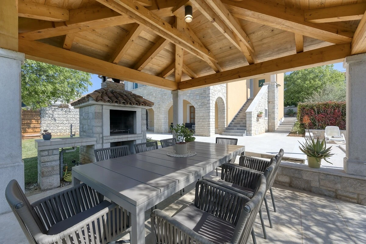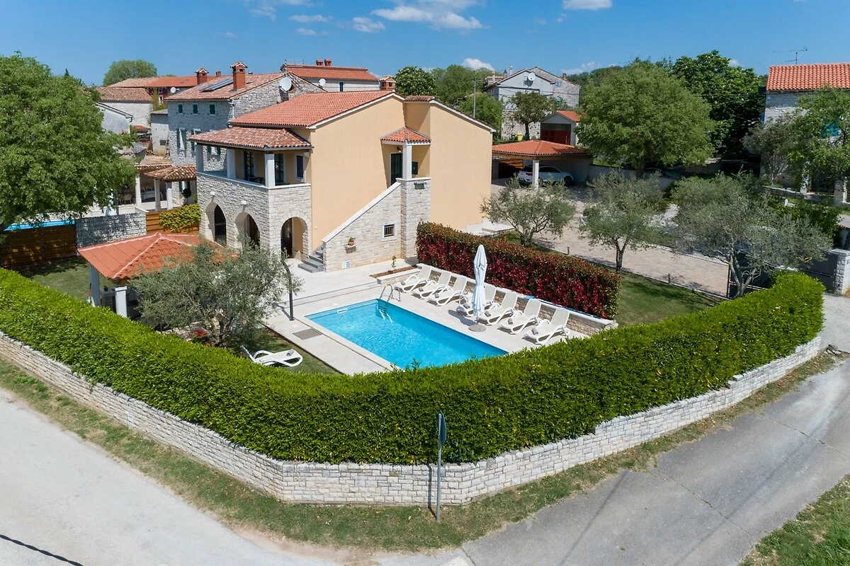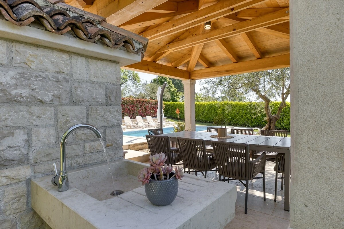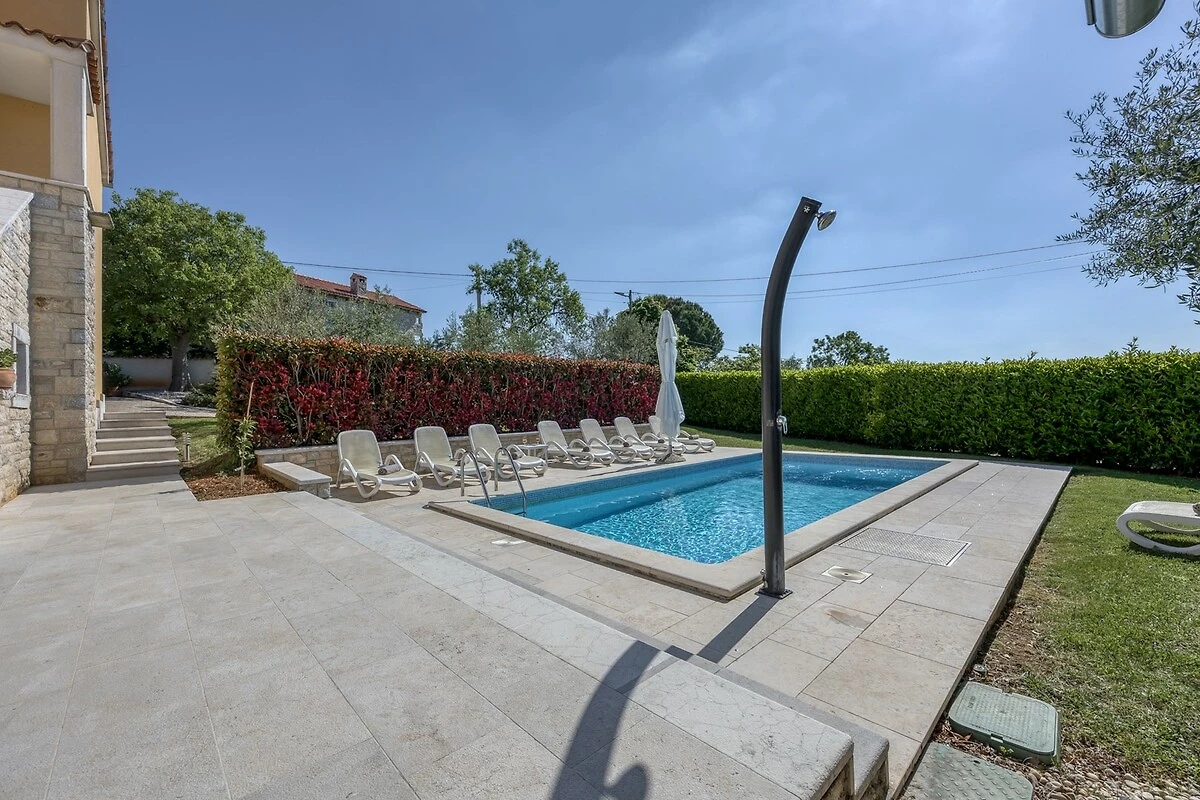 Villa Ladonja è una casa vacanza confortevole con piscina privata nei pressi del Canale di Leme. La casa è stata ristrutturata 2015. Al piano terra: cucina + sala da pranzo e soggiorno con camino. Dalla cucina e soggiorno si accede ad una terrazza coperta con tavolo e sedie, all'ombra di secolari alberi portano il nome "Ladonja". Al piano terra vi è una sauna e un bagno con doccia. Una scala interna conduce alle camere da letto. Due di loro sono dotate di bagno privato, mentre le altre due camere sono dotate di bagni in comune. La camera matrimoniale ha un balcone con una splendida vista sulla campagna circostante e gli ulivi. L'azienda è geschmück da una natura lussureggiante e offre una bella siepe verde Durche massima privacy. I k'onen giardino si preparano con le risorse messe a disposizione griglia un delizioso pasto e poi rinfrescarsi nelle acque cristalline della piscina privata. Al fine di sedie a sdraio e ombrelloni. Nei giorni più freddi c'è una sauna, che è l'epitome di prezzo. Inoltre, offriamo anche seggiolone e lettino. Adatto per una vacanza rilassante nella natura incontaminata.