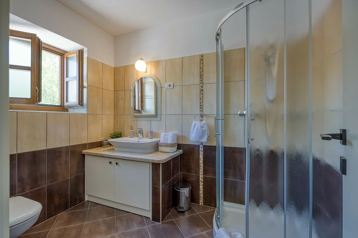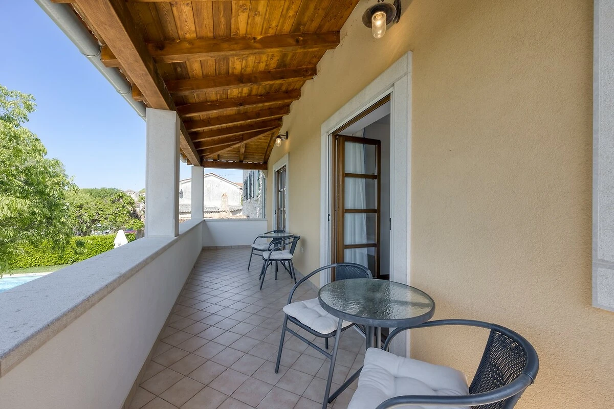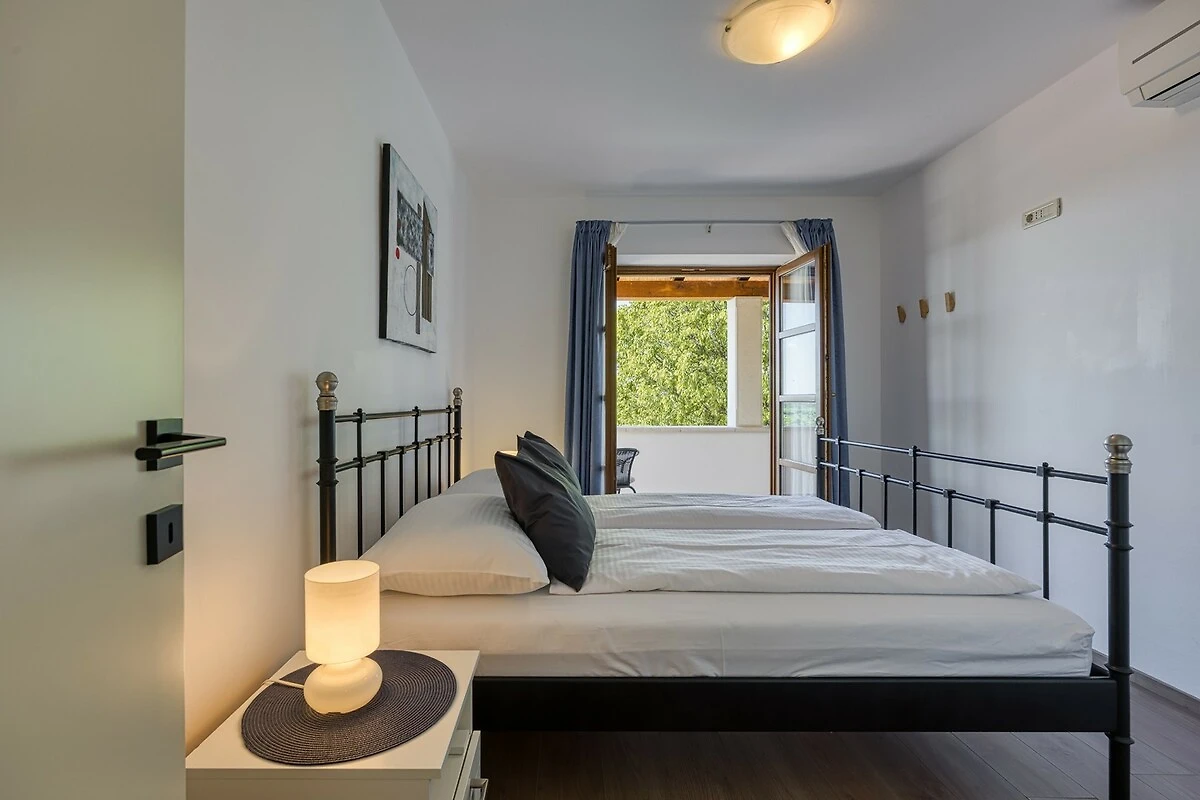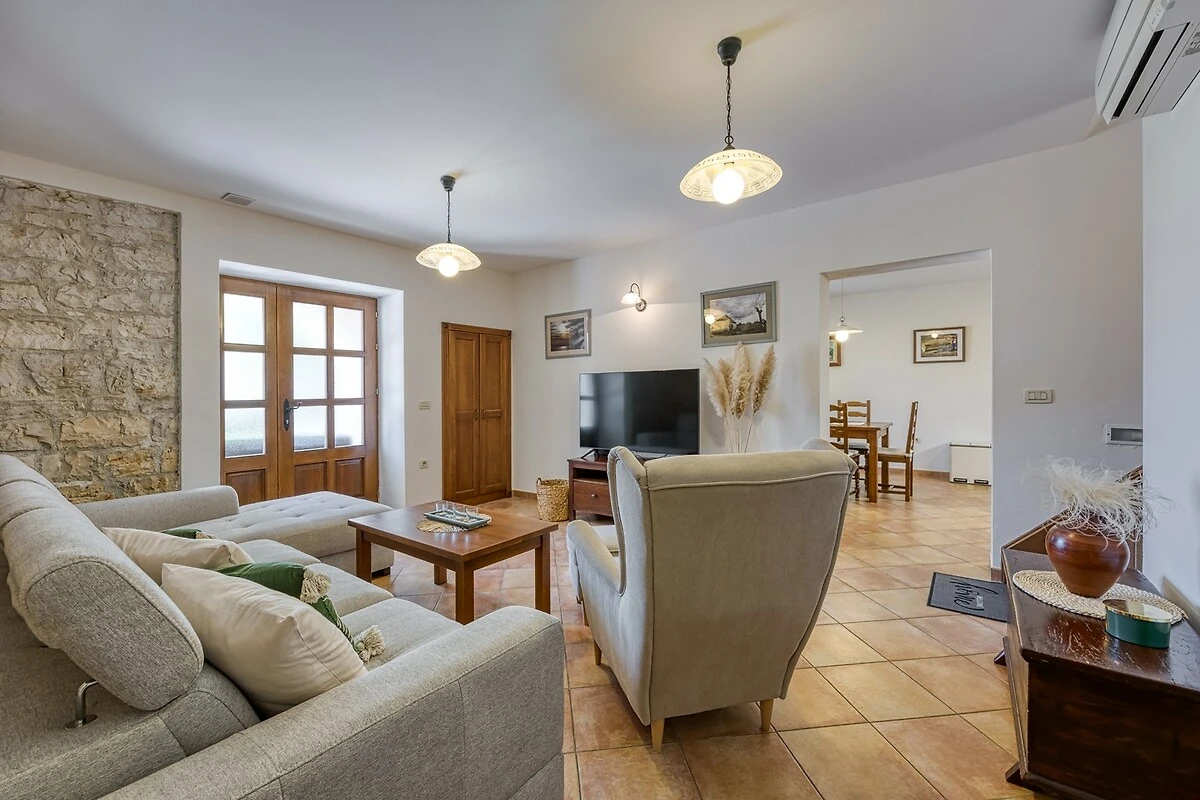 Villa Ladonja è una casa vacanza confortevole con piscina privata nei pressi del Canale di Leme. La casa è stata ristrutturata 2015. Al piano terra: cucina + sala da pranzo e soggiorno con camino. Dalla cucina e soggiorno si accede ad una terrazza coperta con tavolo e sedie, all'ombra di secolari alberi portano il nome "Ladonja". Al piano terra vi è una sauna e un bagno con doccia. Una scala interna conduce alle camere da letto. Due di loro sono dotate di bagno privato, mentre le altre due camere sono dotate di bagni in comune. La camera matrimoniale ha un balcone con una splendida vista sulla campagna circostante e gli ulivi. L'azienda è geschmück da una natura lussureggiante e offre una bella siepe verde Durche massima privacy. I k'onen giardino si preparano con le risorse messe a disposizione griglia un delizioso pasto e poi rinfrescarsi nelle acque cristalline della piscina privata. Al fine di sedie a sdraio e ombrelloni. Nei giorni più freddi c'è una sauna, che è l'epitome di prezzo. Inoltre, offriamo anche seggiolone e lettino. Adatto per una vacanza rilassante nella natura incontaminata.