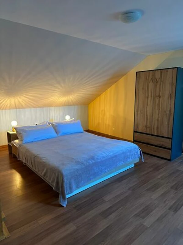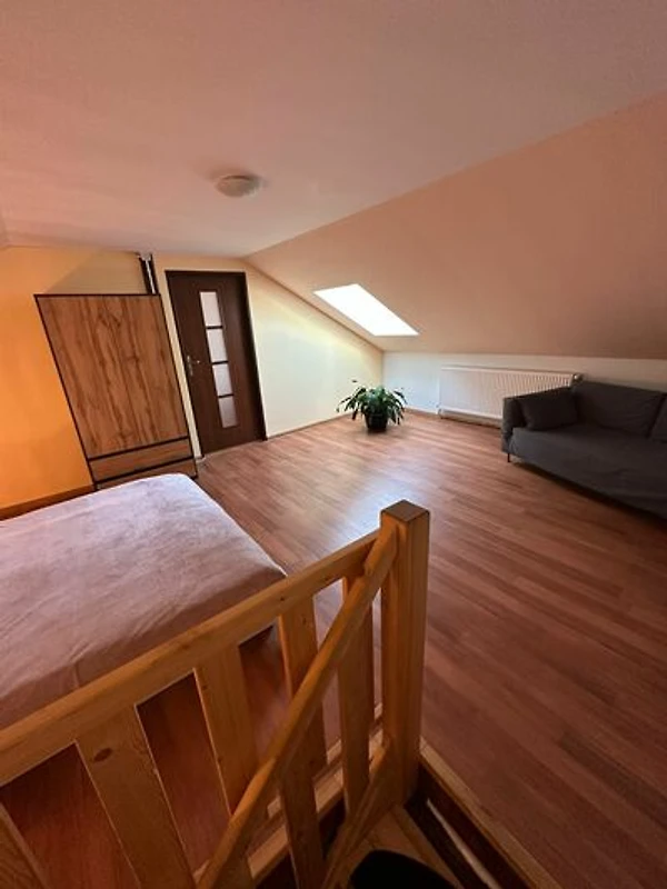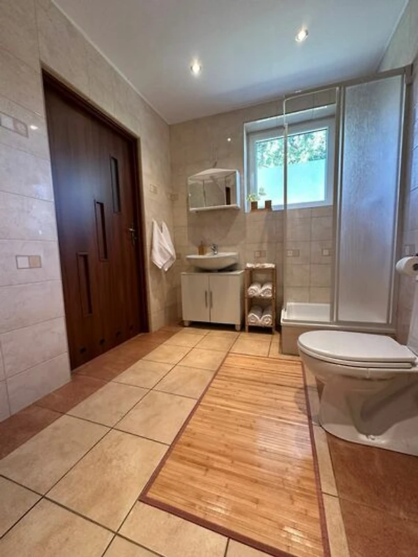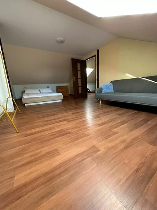 Al piano terra, l'appartamento dispone di un soggiorno di 40 m² con un divano letto angolare più grande e TV, combinato con una cucina. Inoltre, l'appartamento offre un ampio bagno con doccia e servizi igienici.
