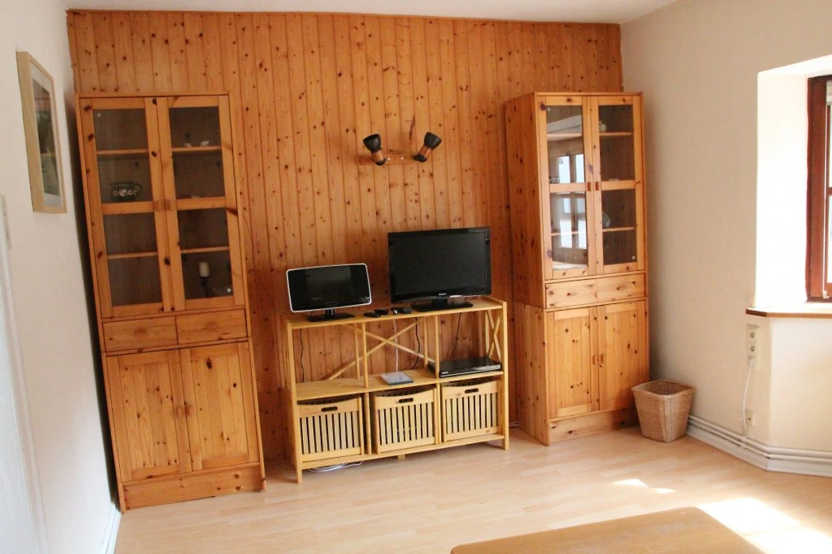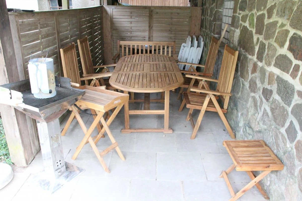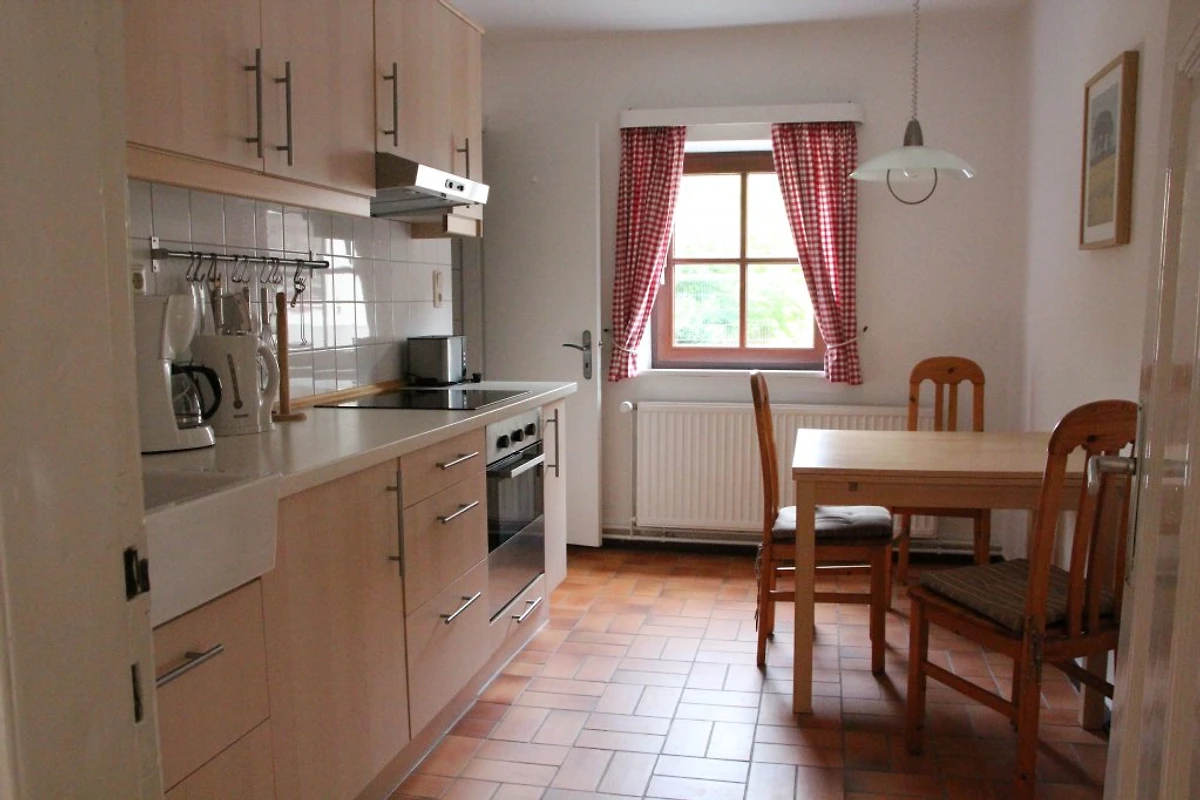 La cucina è dotata di un piano cottura in vetroceramica a 4 fuochi, di un frigorifero con congelatore, di un forno e di una cappa aspirante. Inoltre sono disponibili un tostapane, una macchina da caffè, un frullatore e un bollitore. L'appartamento dispone di un impianto stereo con lettore CD e registratore a cassette e di un televisore con lettore DVD. Nell'edificio adiacente è disponibile una sala comune con un tavolo da ping-pong, un bersaglio per le freccette e posti a sedere. Davanti alla casa si trova una grande sabbiera con giochi da sabbia, un trattore a pedali, una Dino-Car, biciclette di varie dimensioni (si prega di richiedere) sono a disposizione gratuitamente. Nel "Wildacker" della tenuta c'è un focolare, un'altalena e una porta da calcio, un barbecue è disponibile presso la casa.