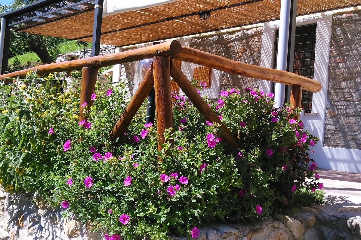 -Esterno : La casa ha un’ ampia pergola ombreggiata (6mt x 3mt ) arredata con tavolo , sedie ,sdraio che è l’ideale per pranzare all’aperto . A due passi dalla pergola bel barbecue realizzato in pietra e fontana in marmo di Carrara . Tutt’intorno giardino ombreggiato da olivi e piante da frutto.