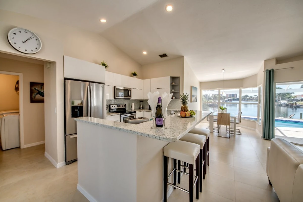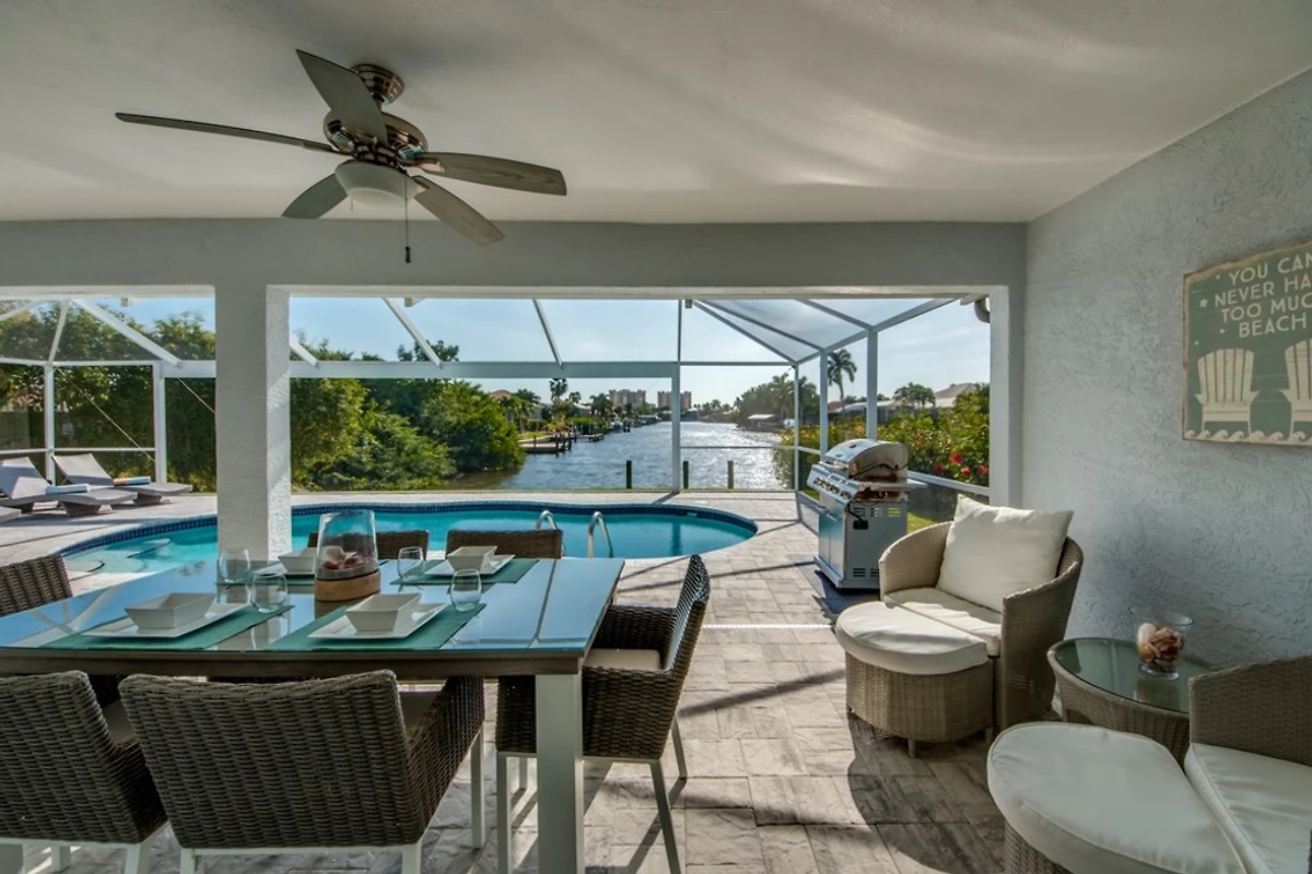 Abbiamo affittato molte proprietà a Cape Coral nel corso degli anni e questa casa è un affitto superiore! Le aree living erano luminose, fresche e accoglienti, con una meravigliosa cucina e sala familiare. Gli spazi esterni erano favolosi con una vista eccezionale su un ampio canale. La piscina era perfetta e il barbecue era ottimo! Torneremo sicuramente in futuro!