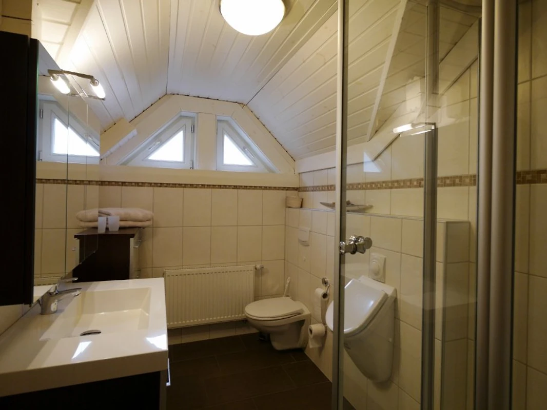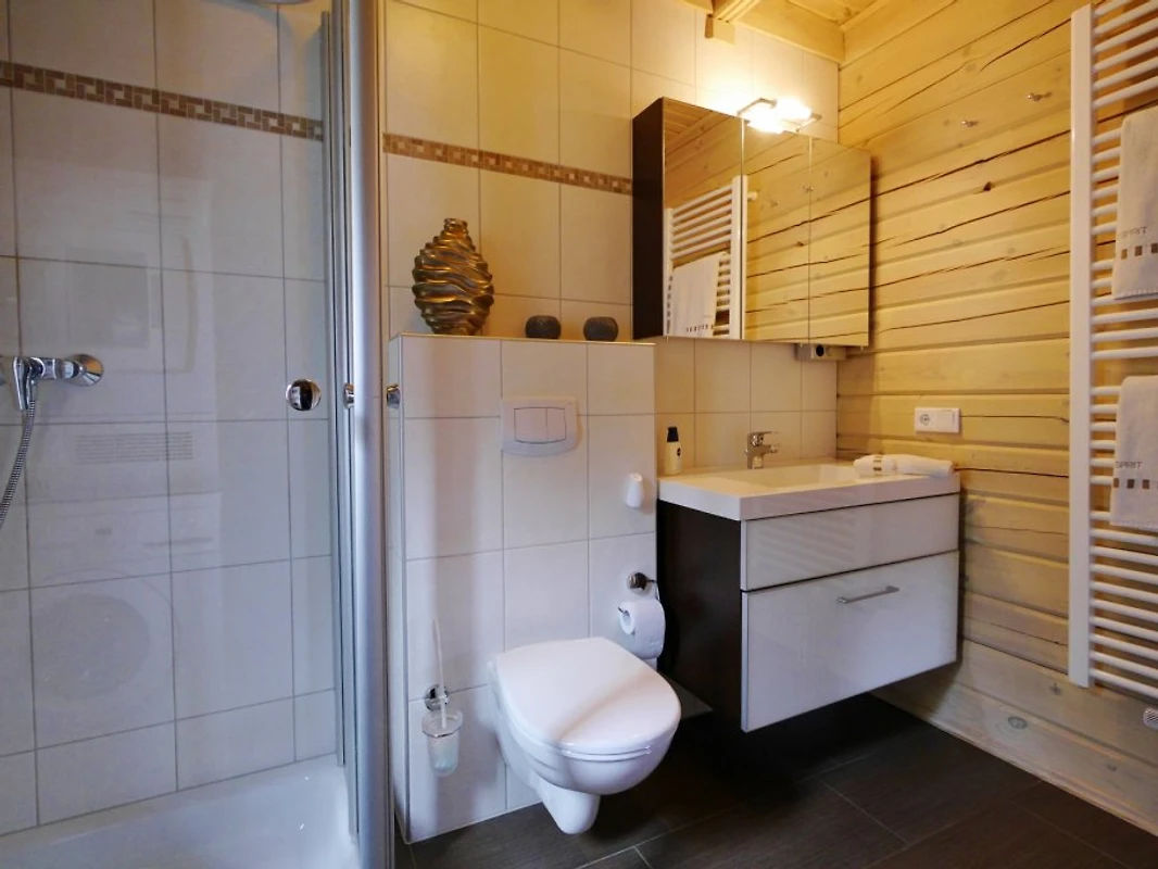 - moderno bagno con doccia e finestra, sauna, scaldasalviette, asciugacapelli, lavatrice + asciugatrice