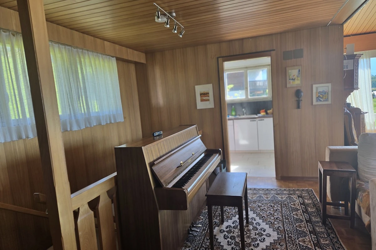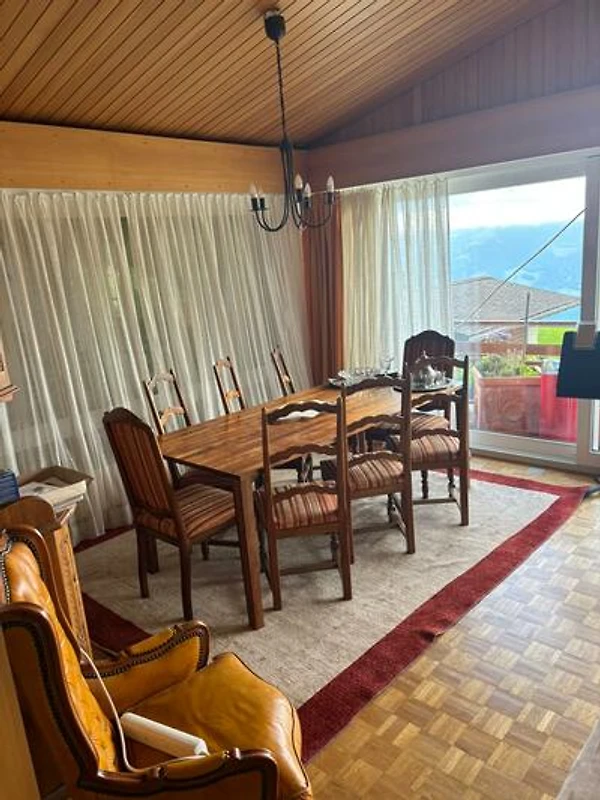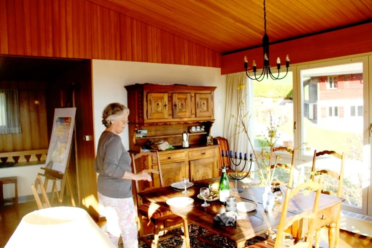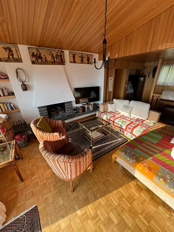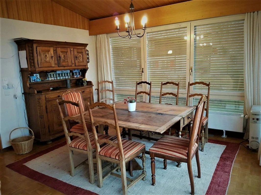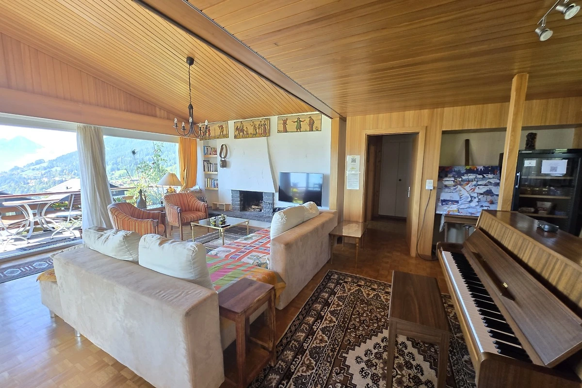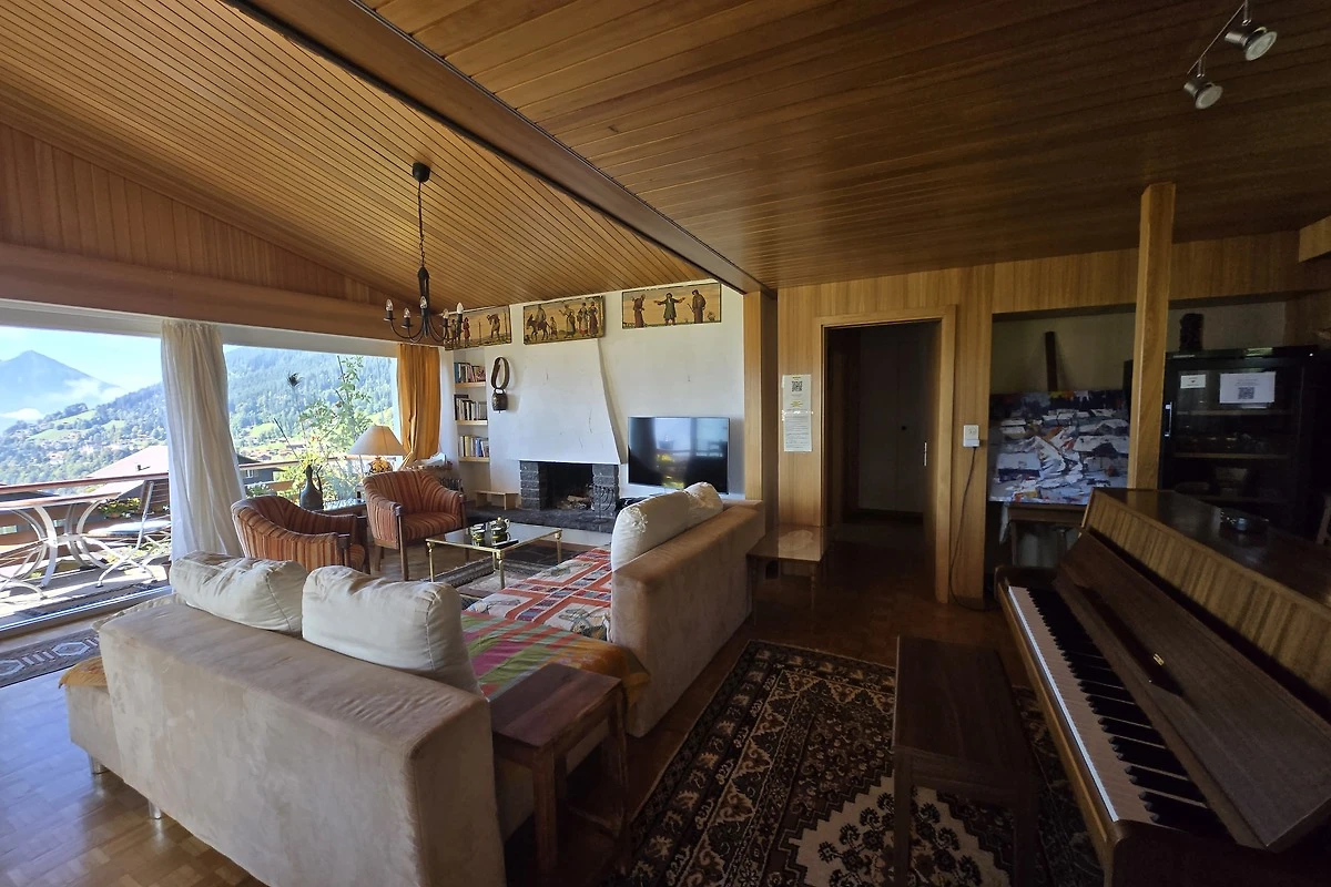 Il soggiorno offre, grazie all'antico buffet vallesano, al camino e al design, un'atmosfera raffinata. Il camino è facile da usare con la legna fornita e i divani larghi possono, se lo desiderate, essere trasformati in un attimo in letti per gli ospiti. È uno spazio che invita tanto a fare festa quanto a leggere, giocare, meditare o fare musica.