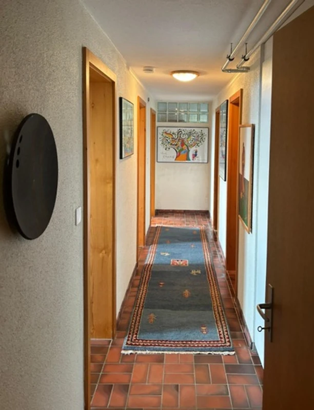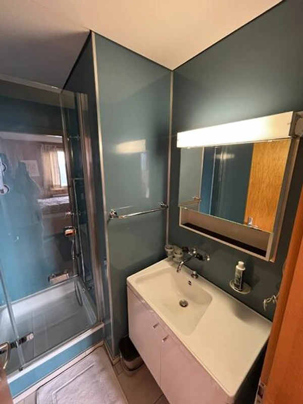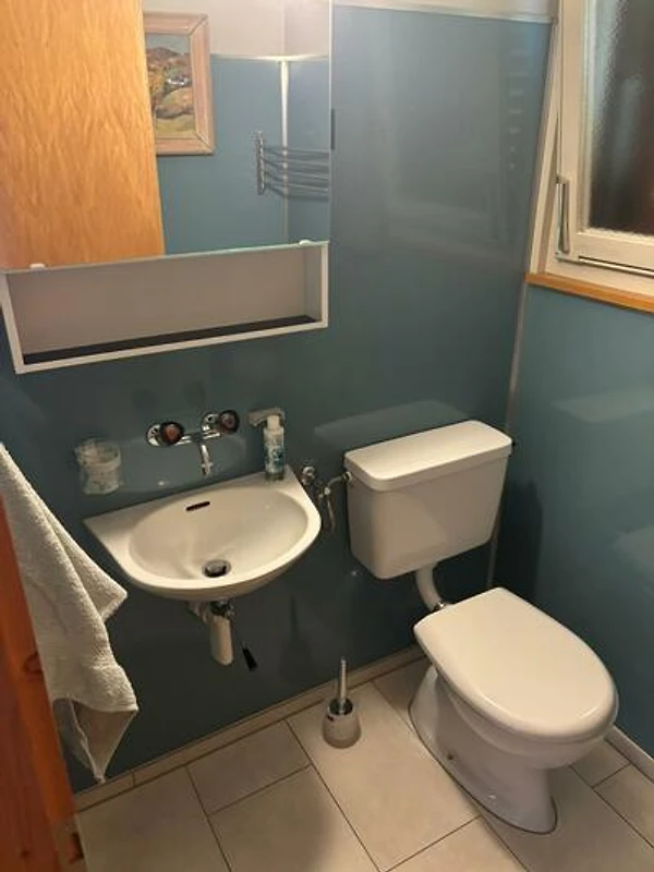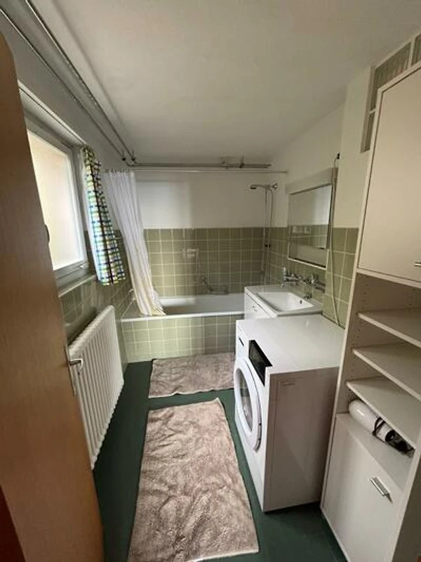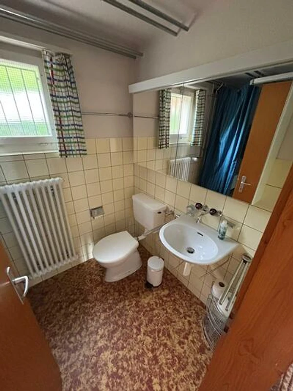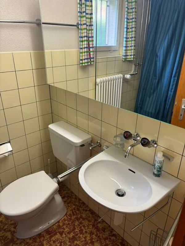 Al primo piano una camera doppia con bagno privato è arredata in modo confortevole. Per due camere singole o doppie (letto estraibile) c'è una doccia e un bagno. Avete libero accesso alla lavatrice e all'asciugatrice.