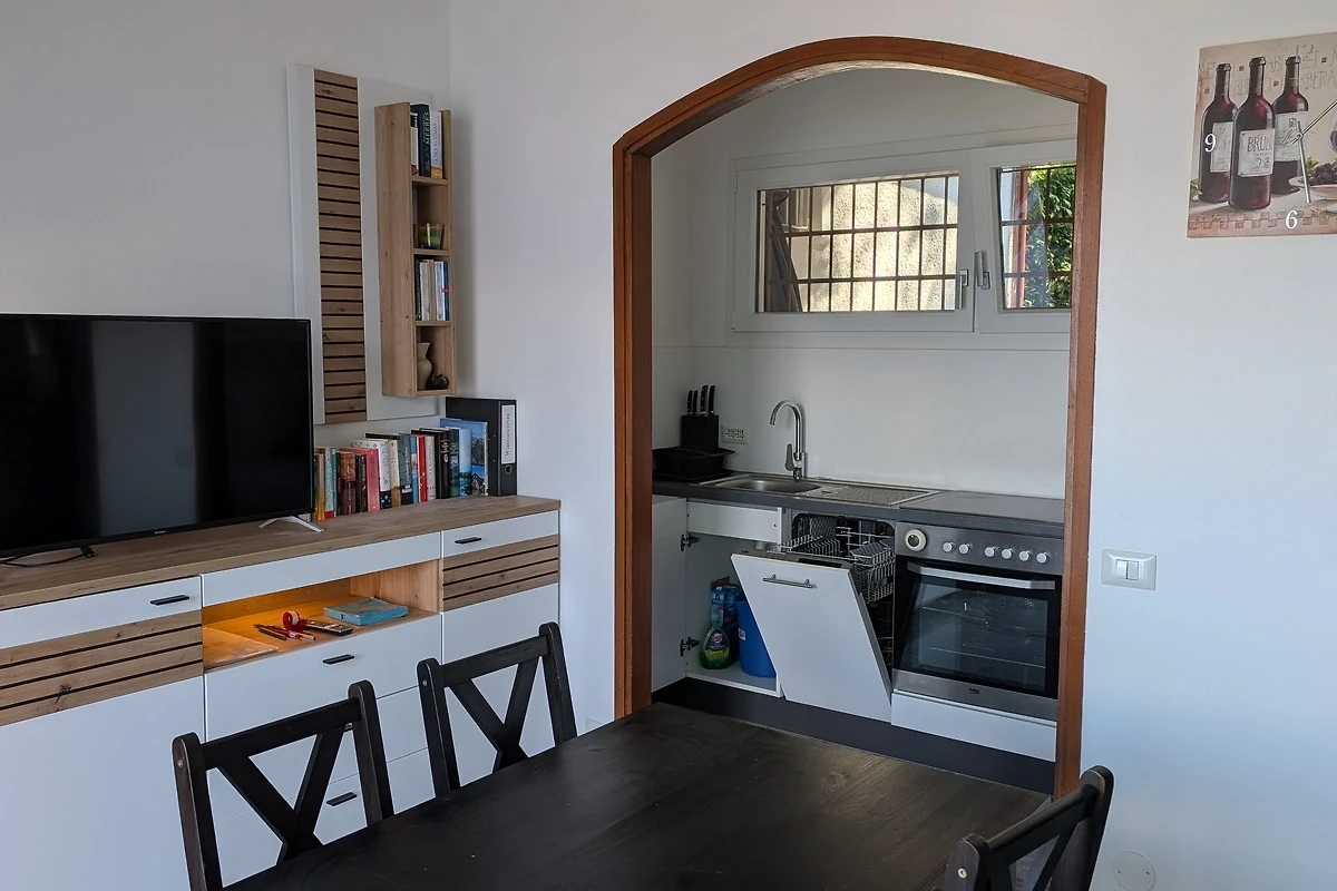 Nel 2017 l'appartamento è stato completamente ristrutturato e dotato di un pavimento in granito. L'appartamento è composto da un angolo cottura, un soggiorno con zona pranzo, una camera da letto matrimoniale e una cameretta, un bagno con WC, un balcone e una terrazza. La cucina è dotata di frigorifero con congelatore, piano cottura con 4 piastre in vetroceramica e una lavastoviglie.