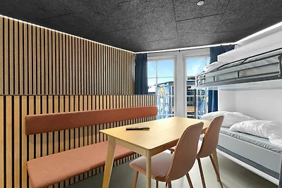 , Soggiorno(2x letto pieghevole (1 pers.)), Angolo cottura(mobile cucina(elettrico), cappa aspirante, caffettiera, forno a microonde, lavastoviglie, frigorifero(+ congelatore)