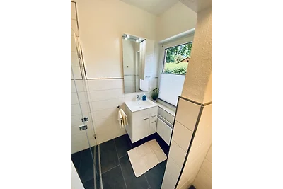 Confortevole casa vacanze di 145 m², vicino al bosco, tre camere da letto con TV, soggiorno con stufa a legna e TV 60", lux. Bagno, terrazza, giardino privato, area barbecue, posto auto, WLAN