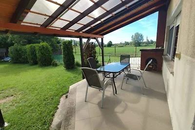 Casa vacanze Balaton a Balatonkeresztúr, 85m² di superficie abitabile per fino a 6 persone, a 1500m dal lago, buona infrastruttura, ad uso esclusivo con ampio giardino. Aria condizionata/WLAN/TV satellitare.
