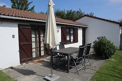 Accogliente casa vacanze sul mare, tranquilla e riparata dal vento, con terrazza coperta per il barbecue e piscina nel curato complesso turistico di Zeebos