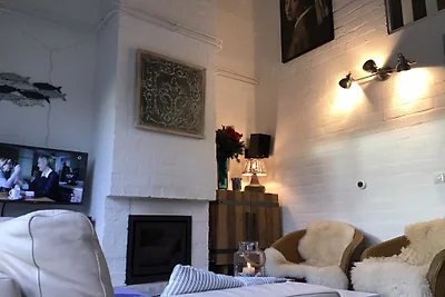 Bella casa per le vacanze indipendente con proprietà di grandi dimensioni, posti auto, direttamente sul mare, W-Lan, marina, spiaggia, nel parco a misura di bambino, camino.