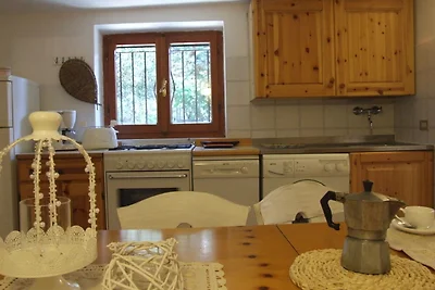 Pianterreno: (Soggiorno(divano letto singolo, caminetto), Cucina separata(TV(satellite), forno, lavastoviglie, frigorifero(+ congelatore), lavatrice)