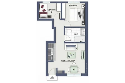 Un tocco di Grecia nel cuore della località balneare di Warnemünde. Appartamento di 36 m² con terrazza per 2 persone, arredato con attenzione ai dettagli. 400 m dalla spiaggia di sabbia fine e ampia.