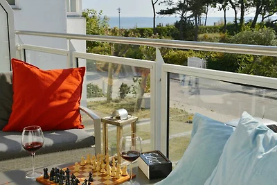 direttamente sulla spiaggia di sabbia fine del Mar Baltico con vista sul mare! arredamento di lusso con balcone, 2 camere da letto, fino a 6 persone, animali domestici su richiesta