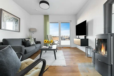 Bellissimo appartamento di 97 m² a Olpenitz/Kappeln in stile maisonette con fantastica vista sul mare, ideale per max. 5 persone, 2 camere da letto e bagni, vasca idromassaggio e sauna