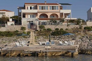 Una spaziosa villa con 4 camere da letto (7-9 persone) con vista sul mare dalla terrazza e due balconi, a pochi passi dal ristorante più vicino ea soli 50 m dalla spiaggia.