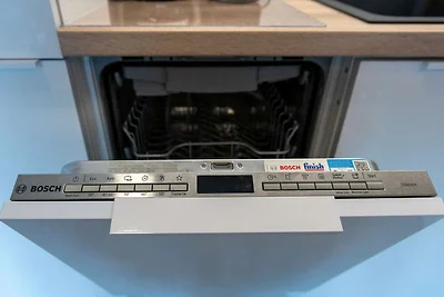 Pianterreno: (Angolo cottura(piano cottura(2 fuochi, induzione), bollitore, tostapane, caffettiera, forno a microonde, lavastoviglie, frigo con congelatore)